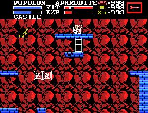 No.586 [ガリウスの迷宮 MSX(その8)]![]() ここまで順調に進んできたのですが、怪現象が・・もしかしたらここで断念せざるをえないかも。 説明します。ここは順調にHelmをget! ![]() まず、あれ!と思ったのはここ。ここにはたしか、ダガーがあるはずですよね。でも、何もありませんでした。これで何か予感が・・・しませんでしたけどね(バカ) ![]() ワールド7へ行くにはここで上の左右に動くブロックに乗り換えて左上にあるハシゴを登っていかなければなりません。ところがこれが難しい。何の気なしに左へジャンプ・・・ ![]() するといきなり、こんなところに出てしまいました。調べてみるとここはあのハシゴを登ったところです。ラッキー!!でも、これが怪現象2。 ![]() その上にお店がありますよね。そこで売っているものは何とGold Shield・・早速買おうとしたのですが、何故か売ってくれません。お金なら腐るほどあるというのに。。です。怪現象3。 ![]() それでもここでFeatherをget!これでいつでもクリアしたワールドへ飛んでいけます。 ![]() それでもようやくたどり着いたワールド7への入り口です。ヤレヤレ・・・ ![]() しかし・・・・階段は見えたものの、いくら十字キーの下を押してもワールド7へはいってくれません・・・ウエーン怪現象4。 ![]() ということで、理由が解明されるまで継続できなくなっちゃいました。残念・・・この原因をご存知でしたら教えてくらはい。。。 お願い。。でも、そんなことわかるわけないか。。。改造のたたり。かも。。でも、こんなことで終わりたくない・・・・・・・・・・・ ぐやじぃ〜〜〜〜〜 |