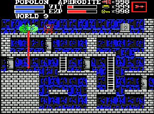 No.590 [ガリウスの迷宮 MSX(その12)]![]() ワールド9です。このワールドは・・とっても難しい。多分・・でも、無敵のぼくちゃんにとっては、そうでもないかな(^^;; でも、ジャンプ技だけは無敵コードを入れてもどうしようもありませんから、ここはひたすら努力、努力。。たまにはいいものです(強がり言って・・・) 入り口はここ。わかりますよね。 ![]() ワクワク・・・ ![]() 入って右にいったところです。ここではコウモリを全部やっつければ。。。上に上がる階段が現れます。いつものパターンです。 ![]() でも、その先はこんなところです。どうです、ゾクゾクしちゃいませんか。。。コウモリちゃんもいっぱい出迎えてくれます。。ふっ ![]() ついでに雷くんも景気よく迎えてくれます。嬉しいって何のって・・ガハッ ![]() このワールドにはこんな子ボスみたいなやつがかなりいます。とにかくやっつけちゃいましょ。たたけよ、されば開かれん、です。 ![]() こんなんもいて、舌が長いのが自慢なんです。なんちゃって(古いか。。) ![]() やっつければハシゴが現れます。ヤッパね。 ![]() 何言っているんだか。。お言葉のLEARDSってRが余分なような気もするんだけど。。まあ、いいかっ ![]() またいました。でも、こっちとら無敵だもんね。 ![]() ちょっとしつこいような。でも、暇だから相手してやっか。 ![]() 新顔です。でも、呪文の刻んである石版がみつからない・・・ ![]() ここには4匹も。それにしてもここはどこだ?迷子になっちゃった。 ![]() やってきたのは、どうやらぐるっと回って元来たとこみたいです。で、、、この上を探検で何度も突くと・・・(ヒントがないのに、どうして。。。まあ、いいじゃないですか) ![]() な、なんと壁が壊れちゃった。ここがワールド9の謎でした。石版が見えます。虫眼鏡でみちゃいましょ。 ![]() ふむふむ・・・ ![]() その先はボス部屋。 ![]() 三首ドラゴンでやんす。ちょっと迫力。 ![]() 火を吐くところもオマケで載せちゃいます。 ![]() で、もってクリア。 ![]() ついにここまできてしまいました。このゲームは必ずいつか。。と思っていたゲーム。それが出来ちゃうのですから、ホントいい時代ですよね。 使っているEMUはRuMSX。これってセーブ、ロードができてすっごくいいのですが、ロードすると、アドレスが替わってしまうらしく、改造コードを入れ直してやらなくてはなりません。それがやっかい。でも、それくらい我慢しなくては。。それと、コントローラはJoy Adapterでキー入力をジョイパッドに割り振ってつかっています。これも便利。ほんと至れりつくせりの環境で、感謝感謝。次はラストワールド10だぜぇ!! |