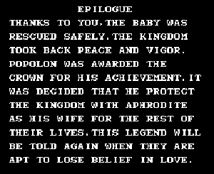 No.591 [ガリウスの迷宮 MSX(最終回)]![]() ついに最終ワールド10です。ここに行くにはクロスが必要です。で、そのクロスってただでは見つからないとこにあるのですよね。このあたりはまえがみさんのHPで参照してください。まず、こんなとこに来なければなりません。 ![]() そして、一段下に降りて・・・ ![]() ここを何度かソードで突くんですが、これが難しい。改造ではどうにもなりませんから、ここはセーブ、ロードを繰り返して使って何とか通路をあけました。ふぅ。。 ![]() で、そろそろと進みます。 ![]() ここの少し進んだところに落とし穴(?)。。しっかりとジャンプしてください。ここもセーブ、ロードで乗りきってください。 ![]() 出てきたのはここ。あの岩の中にクロスがあります。ここもジャンプテクです・・・ ![]() 何とか無事GET・・・・ ![]() ワールド10は4カ所で出現する可能性がある・・ということですが、おじさんの場合、一番やっかいなここに出現しました。 ![]() というのは、ここに来るのにこの左右に移動するブロックに乗り移るのに苦労しちゃいました。 ![]() さて、ワールド10です。ワクワク・・・そしてわくわく。。 ![]() 頭に来るほどきつい場面です。でも、無敵ですからね。。。ふふ ![]() 無敵でなかったら、とうてい進めないとこです。10数年前は・・どうやら、クリアしたみたいですね。ガンバッタんだ・・・ ![]() ここまで来るのにどれだけ苦労したか・・・ ![]() 呪文です。うん。 ![]() ここで呪文を入力。 ![]() ガリウスちゃんのご登場です。なかなかですよね(何が・・・?) ![]() ちょっと時間がかかりましたが、何とかガリウスを倒して右に進めば、こんなところが。この岩のどれかにパンパースが・・ ![]() いました。。こんなとこに閉じこめられて・・カワイソウニ。でも、もう大丈夫・・・ ![]() パンパースよ・・かわゆい・・ ![]() そして、エンディングが・・・ ![]() これからは3人で仲良く、シアワセに・・・ ![]() いろいろ書いてあります。ヨンでくださいね(逃げる・・・) ![]() 続きです。何か感謝されちゃってます。うん、でも、無敵ですから、、そんなに感謝されても・・・ ![]() 最後にこのひとに、もう一度登場してもらいましょ。。。カワユクないですけどね。 ![]() で、、、「ガリウスの迷宮」MSX版 CLEAR!!! さて、ここで約束のオマケです。アイテムのアドレスをサーチして最初からアイテムを全部もたせちゃいましょ。こんなことしてゲームはどうなっちゃうんかな??