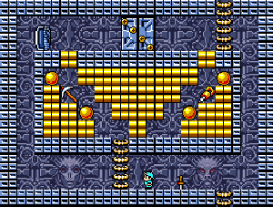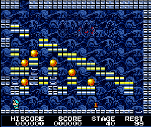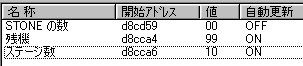 No.601 [エルギーザの封印]![]() 今日は軽くやはりコナミのMSXの名作「エルギーザの封印」を紹介します。このゲームはパズルアクションゲームです。大人のあなたもしっかり満足させてくれるゲームです。 こんなの改造しようがないですけどね。と、言いながらやってしまいます。 実はこのゲーム、やり方がわからなくって暫く放っておいたのですが、何故か気になるゲームでした。今回、やっとルールがわかったので、そして、結構面白そうだったので取り上げます。何せあのコナミさんですから。やって損はないですよ。 改造する前に裏技情報です。もうご存じの方は多いでしょうね。。このゲームにはムテキ技があるのです。 それはこれ。パスワードで・・・ ![]() FESTIVALと入力すれば、もうムテキ。アクションパズルゲームもただのパズルゲームになってしまいます。ただし、MSX版だと「CHEETING」らしいのですが。。。 ![]() ゲームはこんな風に始まります。ここから脱出するためのドアには4つのカギ(?)が。これを開けるには部屋にちらばっているSOUL STONEを4個集めなければなりません。 ![]() ドアのカギをはずせば・・ ![]() 無事、クリア。 ![]() それでは、ちょっと改造してみます。SOUL STONEを数値サーチします。初め4個のとき{S4}、一個取ってのこり3個になれば{S3}てな具合にです。このアドレスに00を入れておけば、SOUL STONEを一個も取らなくても、ドアは開いてしまいます。 ただし、変な怪現象が。。ドアがカギだらけ・・・ ![]() ![]() サーチは、残機は10進数で、ステージ数は16進数でやってください。 ![]() ということで、ちょっと意味のない改造ですが、まあ、お遊びでやってみるのも。。。いいかって。でも、とっても難しいパズルゲームは、相当優れもの。きっとあなたの頭脳を熱くして、もしかしたら燃え尽きさせてしまうかも。 ご用心を(^^;; |