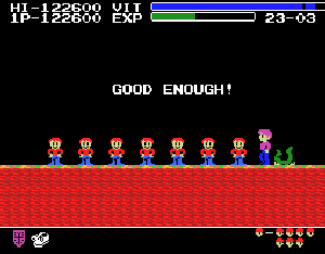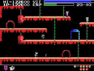 No.614 [グーニーズMSX(最終回)]![]() ちょっとした手違いで一度アップしたこの最終回が消えてしまいました。だから、もう一度つくっているのですが、やっぱ、疲れます。でも、最終回がなくては中途半端ですものね。何を書いたのか思い出しながら・・・・ マイキーは最終ステージで7人の子供達を救出して、この下にある青い扉に入れば、、エンディングが・・・ ![]() エンディングは、こうなって、、、 ![]() こうなるのでした。ファミコンの感動的なエンディングの方がよかったかな。でも、これはこれで味わいがあって・・・・・・(^^;; ![]() では、最後に最終ステージのマップです。 無敵で、いつでも鍵を持っているあなたなら5分でクリア。今度は無敵コードを入れずにじっくりとあそびましょうか・・ ![]() |