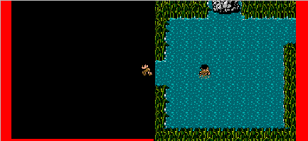 赤い岩を消して出来た通路から西へ・・・しかし、そこは暗闇・・・進むことができません。