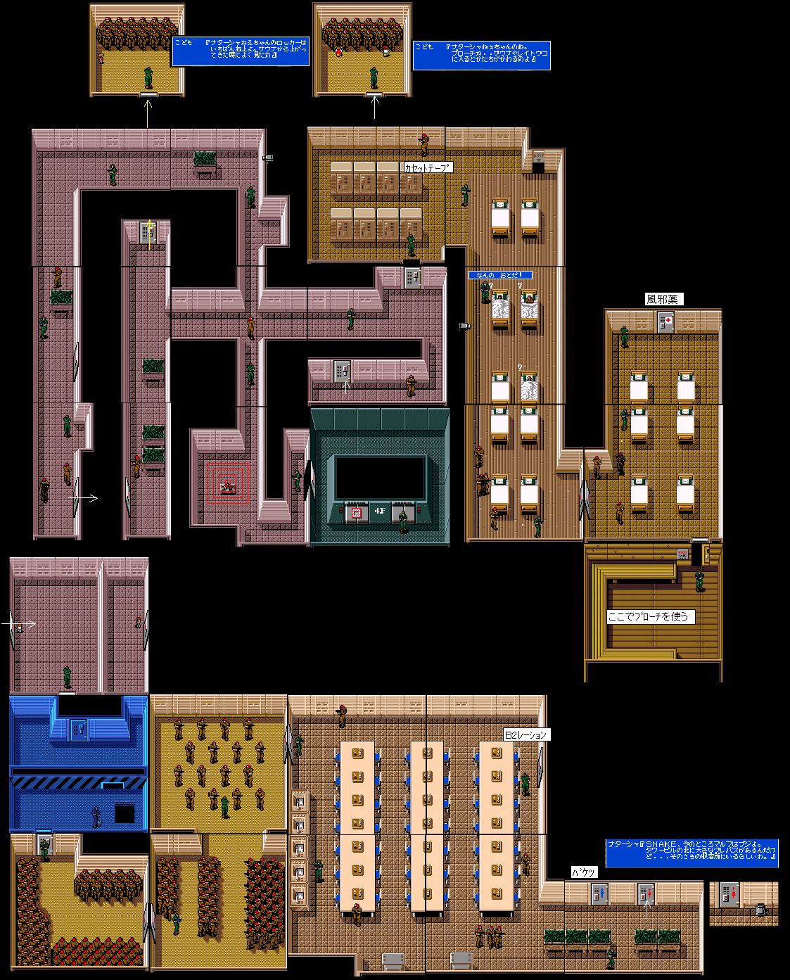 | No.647[ソリッドスネイクMSX(その9)] 今回はこれだけ・・・カード4が見つからないのでズルしちゃいました。ブルーカード(カード4,5,6)のアドレスはここ。ブルーカードを使ってに新たに広がったMAP・No.642(ザンジバービル3F)載せておきましたから、そちらを見てください。ホントニ・・・・・・もう!(でも、モーニング娘って興味全然なかったのだけど・・この頃ちょっとカワユイナなんて・・おじさんなんです。何を言っているのか。 ![]() ![]() そして歩き回ったザンバージビルの4F。まず、これがマップです。攻略は次回。 ![]() |