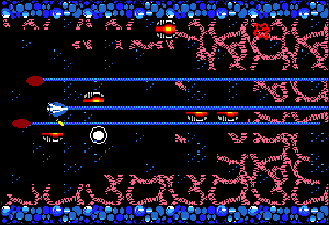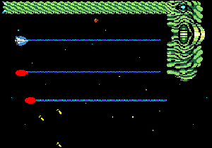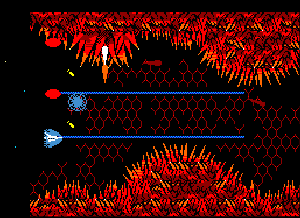 | No.652[ネメシス3 MSX(その2)] 前回(No.576)途中で挫折した「ネメシス3」。今回はその第2弾。、、前回はブラックホールのところで先に進めず挫折したのでした。しかし、今回、このブラックホールを抜けるヒントをNANASEさんからいただいて再挑戦。 抜け方はカンタンでした(わかってみれば)スピードを5段階くらいまで上げて画面の上か下に張り付いていればいい・・・結果はその通りでやんした。ここさへ抜ければ・・もうこっちのもの・・・・・・・・・と思ったのですが。。 とりあえず、華麗なとてもMSXとは思えないネメシス3のスクリーンショットをご鑑賞を・・