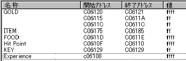 その前に改造コードを。これでアイテムほか総て満タン。ゲームはちっともおもしろくなくなります(^^;;