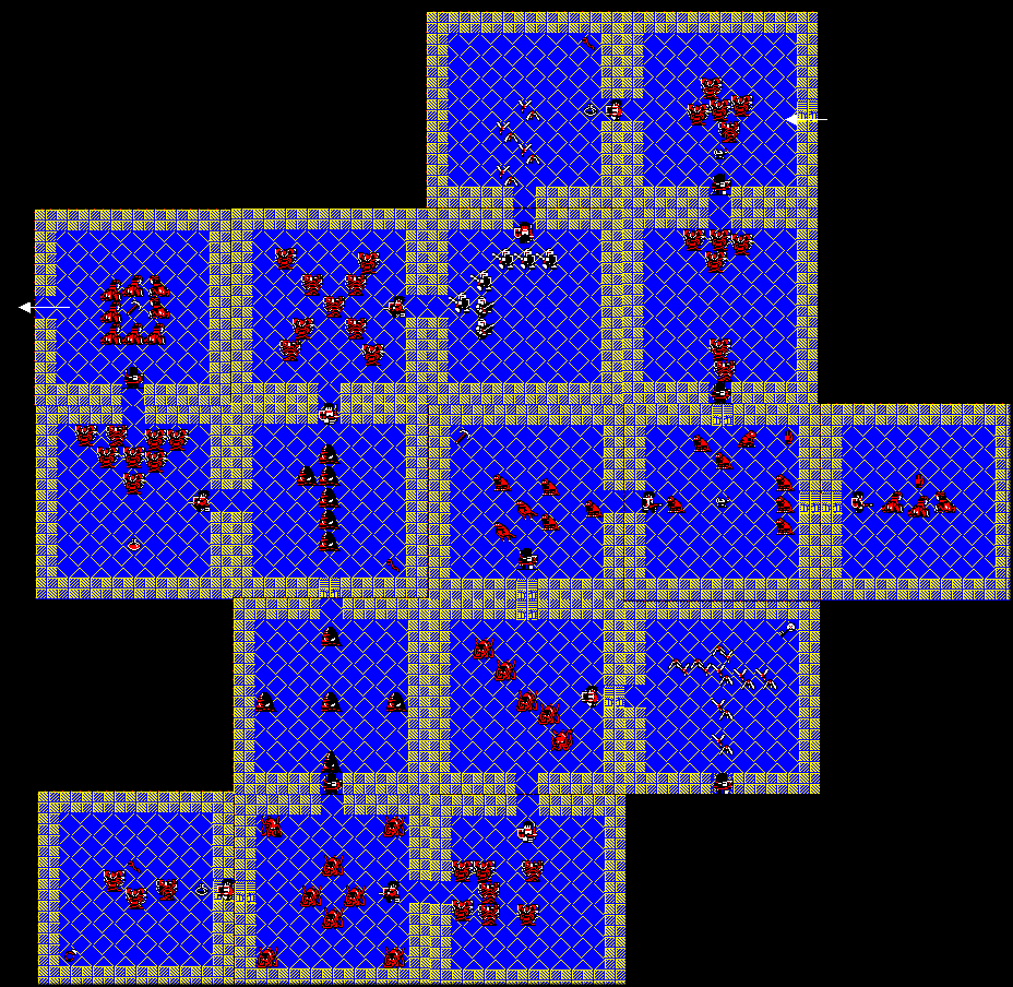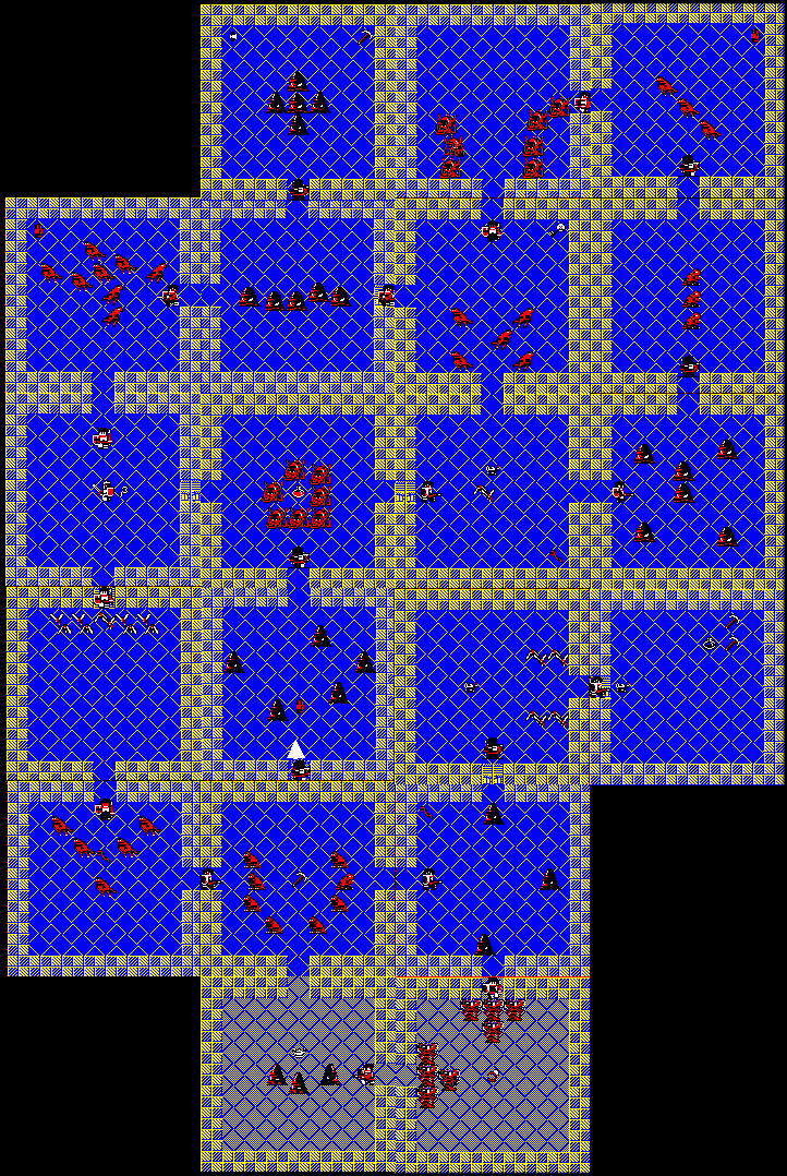 No.658[ザナドゥ(LEVEL2)]![]() レベル2ともなればちょっとザナドゥ・テクを知らないと攻略できないかもしれません(アイテムがいっぱあるから、そんなことないか)。だから、今回は、まず、よく知られたテクのひとつを紹介します。 レベル2にあるこんなところ。上に上るには下図のよううに、テンキーを素早く押してやってください。・・・・・何ってことないか。ということでした。さて、レベル2の迷宮MAPですね・・・ ![]() ここで早めに究極の技を教えちゃいましょうね。誰だって知っている技なんですけどね。この技があったから、おじさんはずっと昔、ズルしないでクリアしちゃいました(これもズルといえばズルなんですけどね)。 ![]() 左はアイテムの総てです。この中の重要なアイテムは「I」のMantleです。これを使えば、一定時間迷宮の壁をすり抜けることができます。でも、一定時間です。時間がくるとその効力はなくなってしまいます。ところが・・・敵と戦っている間は時間がストップしてしまっているのがザナドゥの決まりなんです。と、言うことは・・・下図の状態では時間は経過していないことになるのです。。そうなんです。アドル(?)は敵に触れることなく、迷宮を散歩できちゃうということです。楽しいですよね。そして、このことがいかに重要なことなのかは、ゲームをやっているあなたにならわかりますよね。でも、でも、アイテムがありすぎて、おまけに無敵のあなたには関係のない話なんですがね(^^ ![]() レベル2のキャッスル1です。何ってことはない・・・ここにはキャッスルが4つあったはず。。。 ![]() そしてキャッスル2です。どこにあるかは・・・探してください。うろうろしていれば、見つかります(無責任)このあたりはどの部屋にも敵がいますから迷わないですね。これが、、レベルが上がればそういうわけにはいかない。迷子になっちゃうでしょうね(心配) ![]() 長くなっちゃいましたが、これがキャッスル3です。まだまだほんの序盤。いつになったら終わるのでしょうか。。。でも、懐かしい・・・ ![]() レベル2最後の迷宮です。この迷宮にはレベル1からでないとくることはできません。くる方法は・・・・・探してください。さて、次はレベル3です。 ![]() |