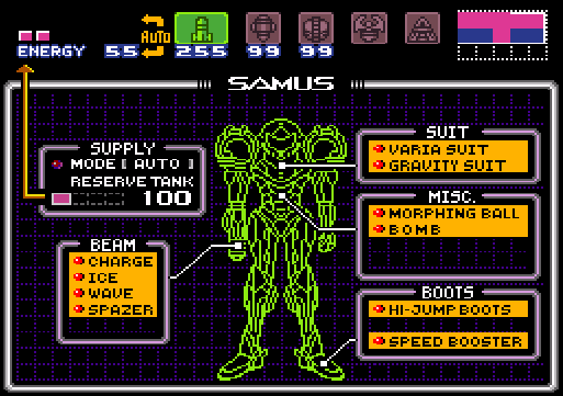 今のサムスの装備です。なかなか立派になっちゃって・・・ウルウル