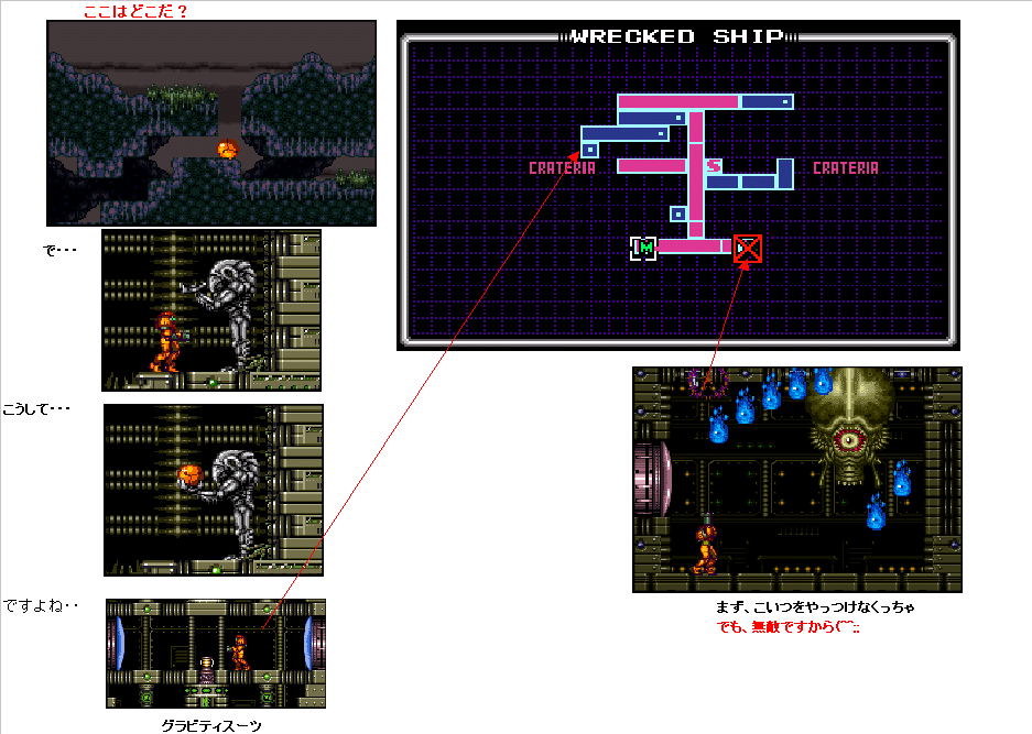下のMAPとネタバレ情報を見れば、ちっとも難しくありません。でも、無敵でなかったらこのボスはなかなか手強そうです。