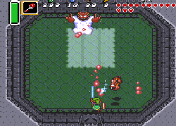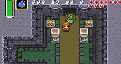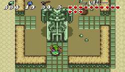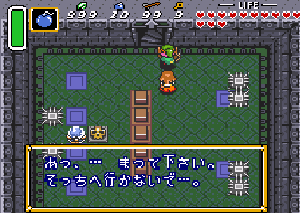 No.689 [ゼルダの伝説・神々のトライフォース(その13)]![]() 第四のクリスタルははぐれ者の村にあります。でも、一体どうやってはいるんや? ![]() 顔を真っ赤にして・・・・・ ![]() という訳で入り口が出現。ホンマ苦労するぜ。 ![]() 壁に穴を開けたりしてウロウロしていると大きなカギGET! ![]() そしてパワフルグラブもGET!ここまでは特に難しいとこはなかった・・ですよね。 ![]() 地下にかわゆい女の子がいてこんなこと言うのです。誰ですかね? ![]() 簡単にボスがいるらしい部屋にたどり着いたのですが、誰もいない。何故やぁぁぁぁ!! ![]() 仕方ないからウロウロ。。ここから1Fにあがろうとすると、こんなこと言う のです。でも、何故なんでしょう?わからんことばっかりや。 でも、わいは行くで(下品な言葉使い・・・スンマヘン) ![]() どん詰まりにこんな部屋が。何か秘密めかした部屋でんな。 あれっ、女の子がいつの間にかいなくなってしまっています。 ほんは、勝手な子や。 どうやら、謎の全てはこの部屋みたいです。この部屋はボスの部屋の真上にあります。ここのボスは光に弱い・・・・ ・・・・・光の射し込んでいる場所にひび割れがある。 多分、あの床を爆弾で破壊して・・・ でも、あんなに遠くに爆弾をどうやって置くことが出来るというのか???? ここで相当悩んじゃいました。 出来た・・・・ やり方は、、、、爆弾をAボタンで持って投げつける ・・・・何のこっちゃ(アホくさっ) ポッカリ空いた穴から光が射し込み、この下の部屋に溢れているはず・・・・ ここにボスを連れていけばいい。そしてボスは・・・・・ 多分。。。あいつ☆★$♭♪♪♪ ![]() ボス部屋にもう一度・・・・ ![]() やっぱ・・・ねっ。 正体を現しました。 ![]() でも、簡単。 クリスタル・・・ゲット♪♪♪♪ ![]() ![]() ここは爆弾セットで苦労しちゃいました。分かっている人には何でもないんでしょうけどね。 とにかく、これでクリスタルは4個。あと3個だよだよ〜〜〜ン(^^ |