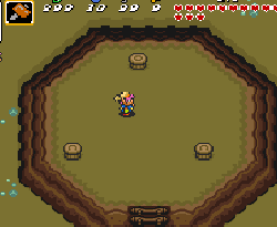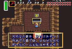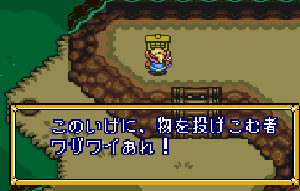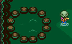 No.692 [ゼルダの伝説・神々のトライフォース(その16)]![]() 第六のクリスタルはカメ岩にあるという。カメ岩に行くにはこんな とこに来て、三つの杭を順番に叩きます。 どういう順番かは、、試してみてください。 ![]() すると、ワープゾーンが現れて、暗黒の世界へ レッツ・ゴー!! ![]() 出てきたのはカメ岩の上・・・でも、この後どうすれば いいのでしょうか?目の前にマークが・・・ 成る程、この上で・・・・ ![]() やってくるのは、ここ。何故わかったのか?ですって・・・ そりゃあ、秘密でんがな(^^ ![]() 投げ込むな、って言われれば、投げ込みたくなるのが 人間・・ですよね。 ![]() すると、へんななまずのおっさんが出てきて・・ ![]() 何かくれると言うのです。 ![]() こんなものあっさりもらっちゃってもいのですか。世の中何がおこるか わからないですよね。宝くじ買っちゃおうかな(バカ)それにしても、、 このマークは・・・ ![]() と、見え透いた言葉を吐いて、再び、ここへ。 そして、、、、 ほら、開いちゃった。Let’s Gooooooooo!! ![]() 入っていきなりこれ。どうすりゃあいいのだ・・・ ![]() ここはこれ。わかりますよね。 ![]() ウロウロしてたらいきなり大きなカギ・・苦労しませんでした。 ![]() そしてカガミの盾。ここまでも簡単。何の謎もありませんよ。 ![]() 謎と言えば、ここですか。振り向けば後ろのトビラが閉まって しまいます。こりゃあ、閉じこめられてしまったか・・・・ その時は、、、、Bボタンを押したまま後すざり・・・・ホラねっ(^^ ![]() |