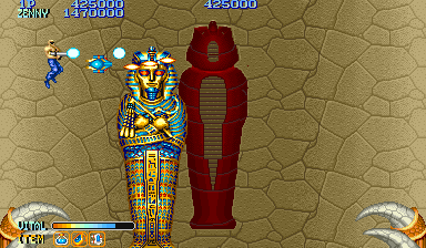 No.695 [ロストワールド(アーケード版)]![]() ロストワールドです。1988年の作品ですから、、スーパーマリオが一世を風靡したのが1985年頃であることを考えれば、どんな時代だったか想像がつくと思います。 まだまだアーケードがマニアのたまり場だった頃。。でしたか。 ちまちま動くテレビゲームに対して豪快で華麗なアーケードゲームはあこがれの的でした。まさか、数年経ってこのゲームがエミュレータという形をとって、家庭にあるモニターに映し出されるなんて、夢にも思わなかった、のどかな時代でした・・・あのころはよかった(バカカ) ![]() で、こんな昔の想い出に浸れるひとにとっては懐かしくて涙が出ちゃうかもしれませんね。 まず、改造です。 これで何の心配もなく、画面の隅々までみてください。ゲームセンターでは、敵の鬼のような攻撃をかわすために、そんなこと出来なかったかた、あなたです(^^![]() ここからは、いつものようにスクリーンショットをずらっと並べます。決して手抜き・・・・・でした。でも、何の説明も要りませんよね・・うん・・・・