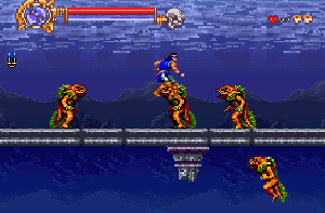 No.696 [ドラキュラXX(SF版)その1]![]() 大好きなドラキュラやります。前の記事を見直してみると、この「XX」はスクリーンショットがすくなく、よし、決めた・・てな訳です。スーパーファミコン版の第二弾のドラキュラですが、出来はこっちが数段上。。。だったような。じっくりと攻略していきます。 こんかいはその前半・・かな。 その前に改造です。最近はDBxSTANDを使っています。WIN2000にExSTANDが対応していないからです。使い勝手は・・・慣れれば、こっちの方がいい・・ということでもないか(どっちや) 結果です。 ハートは十進数で入っています。だからサーチはS10hとかS23hとか、最後にhをつけましょう。ゲージは増減法。無敵は魔界村的無敵のサーチです。簡単でしたよ。 じゃあ、始めましょうか。 まず、第一ステージ。この画面の美しさにはやっぱり感動しました。 燃えさかる炎はとても美しく暫く呆然としていたのを憶えています。じっくりとスクリーンショットを堪能してください。うううん、ビューテホ☆★☆![]() 何も言うことありません・・・ ![]() では、、何も言いません(言ってるやないか・・・・) ![]() こいつって何なんでしょうね。いきなり登場してきたお化けバッファロー。でも、わたしゃあ無敵。 ![]() そして次はこれでもか、、という青い炎。凄げえ・・・・ ![]() 第一ステージのボスは黒豹。何故か官能をそそります(何でや!) もう一丁・・・![]() で・・・・・クリスタル(どっかで聞いたことあるような??) ![]() ステージ2(そのまんまや・・) こんなとこです(説明不足だよ。。。スンマヘン)![]() 助けてくれ・・・とは言いません。だって、、、、(もう、いいって・・クスン) ![]() そしておなじみのこんなとこ。窓から入り込んでくる光は月光なんでしょうか。 ![]() 階段を昇っていけば・・・ ![]() 上から槍を突き立ててくるのです。こわいですねこわいですね(ふふふ) ![]() 目玉ちゃんとも仲良しです。ゆっくりとお話しましょうよ(何のこっちゃ) で、ついに出てきました。大コウモリちゃん。いつもは第一ステージで出てくるのにね。昇格ですか。 ![]() 大コウモリが分裂。どうなっているのでしょうね。理屈なんてどうでもいいのでしたか(^^;; ![]() て、訳で、第二のクリスタル。いえぃ!! ![]() こんかいはここまで。次回が楽しみ????ですよね。じゃあ、オタノヒミニ・・・ |