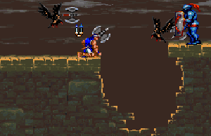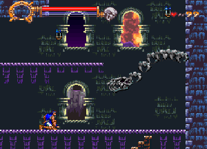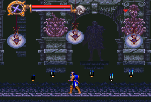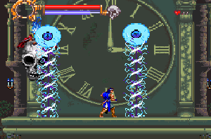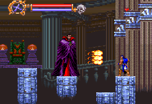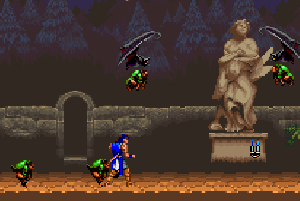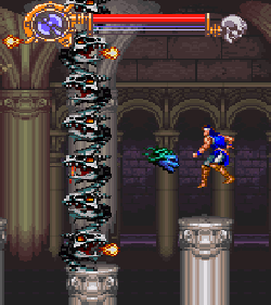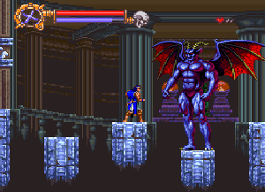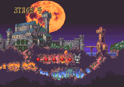 No.696 [ドラキュラXX(SF版)その2]![]() さて、続けましょうか・・血に染まったような色を した月が不気味にかかるドラキュラ城・・です。 ![]() このメビュウスの首の動きがいやらしい。 ![]() 上のトゲに接触しないようにしっかりとかがんで。しかし、カラスには 気を付けて。。 ![]() こいつもおなじみの敵キャラ・・ ![]() この鎧騎士もですよね。 オノに当たらないように。 ![]() またまたオナジミが。吐き出す炎は熱いですよ。 ![]() そんなに集団でお出迎えしてくれなくっても いいのに。律儀なんだから、もう・・ ![]() そして、ボス。 ちょっと見難いかな。ゴメンナハイ(^^ ![]() Get!!クリスタル!! ![]() ステージクリアの後はこんな画面。 ![]() やってきました、ステージ4。 こんな雰囲気のステージです。地下牢ですか。![]() 上下に動く針に串刺しにされないように・・痛ぁぁぁ!!では すみませんよ。 ![]() これだけ集まって来られると、もう大変・・でも ないかっ!! ボスぅぅぅ・・・牛の怪物ですか。 クリスタルのコレクションもこれでいくつになりましたっけ。![]() ステージ5はもう終盤ですかね。 飛び跳ねるセムシ男も、もううざったくて、、コントローラを投げつけたろか、、なんて・・・ 昔の想い出です(クゥ・・・・・) ![]() こんな場面も懐かしい。X68版では、ここで死神が出てくるのですが・・・ ![]() 今、バックに拓郎の「全部抱きしめて」が流れています。 懐かしいきみたちも抱きしめてやりたい(訳わかりませんでしたか? 失礼。読み流してください(^^;;) 痛っ!!油断していました(ふふふ)。 ボス・・ですよね。死神じゃあなかたのか・・![]() 十字架よ飛んでいけっ!!!なんちゃって。 難なく・・・Get!!ううん、月が綺麗だ。そして、きみも綺麗(誰?きみって?・・いえ、そんな人がいたらいいなって) ![]() さてさて、ステージ6。もしかしたら 最終ステージ。いやだよぅ・・ 下がっていくブロックを飛び渡りながら・・・![]() やっぱり、時計台。定番ですから、、ないともの足りない(ですよね) ![]() いかにも不気味。でも、いつもながら BGMが素晴らしい。聞こえない?(そうでした) 時計台のボスはドクロちゃん。目玉は・・・![]() 動きが早くて、お茶目なんだから・・・ウインク?じゃあないか・・ ![]() 目玉の落とすトルネードビーム(そんな名前ついて いないよ)いえ、わたしが命名しました。まあ、何でも いいのですけどね(うん) かわゆいからもう一度アップ(ふふ) ![]() でも、こうなる運命だもんね・・ もらっちゃった。でも、これ、どこにしまっとけばいいのでしょうか?バカなこと考えなくてもよろしい(はい) ![]() これがホントウの最終ステージ。 さて、じっくりと遊びましょうぜ(うううんん) 不気味に輝く巨大な月を背景に長い階段を昇っていくシモン・・・なちゅかしい(うぇーん・・泣くなって) あんたもナツカシイから許しちゃう。ぜ〜んぶもっていけ!でも、この純真な心だけは。。ダメ(ホント・・バカ) ![]() この先に・・・ワクワクドキドキ・・・ やっぱ・・・ドラちゃん。。頬ずりしてくらはい(ホント・・地獄へ行け!!) ![]() そうそう、最後にでてくるのはあんたはん(ここは 大阪やないちゅうのに)でも、デビルマンかい・・まさか(死ね) ![]() すげえ!!!でも、平気だもんね。 謝ればいいんですよ。世の中、みんな素直になればいいのですがね(何じゃ)そして、あんたもくれちゃうのですか・・ ![]() ![]() 始まりました。エンディング・・コワイ〜〜〜 なになに?? ![]() ![]() 消滅ぅぅぅ・・・ でした・・・よかったよかった。これで彼女でもいれば、、、(何も関係おまへん)でした・・・やっぱ、ドラキュラっていいですよね(うん) ![]() |