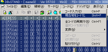 No.696 [マーベルランド(DBxSTAND講座)]![]() マーベルランドの無敵化講座です。 まず、mame32を使ってマーベルランドを起動させます。 ゲームセンターではやったことないのですが、やってみて結構難しい・・・ やっぱ、改造です。 さて、ではDBxSTANDを立ち上げます。その時、マーベルランドは「P」でポーズかけておいたほうがいいかも。 ここでプログラムエディタを選択します。 ![]()