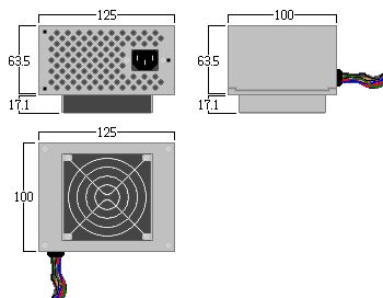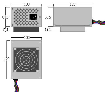 SFX(C)→幅125x高さ63.5mm(実質80.6mm)x奥行き100mm(ファンの厚み17.1mm)