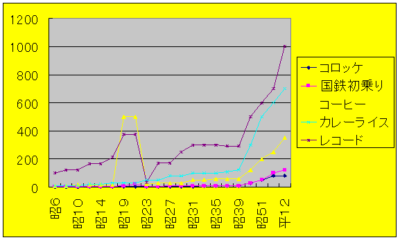 ここでレコードの価格を他の物価と対照してみましょう。まずはグラフをご覧ください。