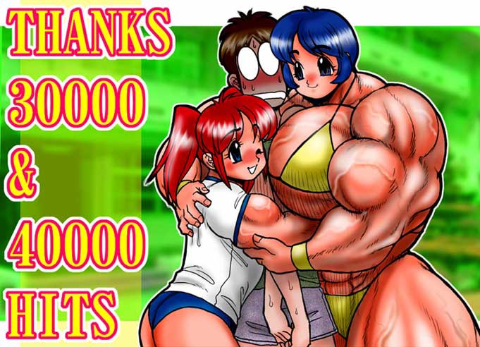 ここは学園の初等部、つまり小学校の校舎のあるところ… 逃げ回っていた太郎は優美と真由美に挟まれついに捕まってしまった… 「は、はなしなさい!二人とも!ジェニファーさんに呼ばれてるんだから!」二人の小学生に挟まれ身動きできなくなった太郎が言った。どうやら今回の記念撮影はジェニファーが誘っていたようだが… 「ダメだよ〜♪ 今回はあたし達で記念写真撮るんだから」太郎の腰にしっかり腕を巻き付けた真由美が悪戯っぽく言う。9歳にも関わらず、その力は太郎を押さえ込むには充分すぎる。 「たろにい、逃がさないからね〜♪」優美は真由美ごと太郎をがっちり抱え込んでいる。真由美の一つ上の10歳だが、その筋量は凄まじい… 「ばか!ジェニファーさん待たせたらハグされちゃうんだよ!」太郎は必死に訴える。ジェニファーにハグされるイコール上半身を破壊される、と言う事になる。 「じゃああたし達に今壊されちゃうのはいいのかな〜?」と真由美。 「ジェニファーさんがつぶしちゃえるところが無いくらいにしちゃえば安心だよねぇ?」と優美。 「・・・・・・」血の気がひいて黙ってしまう太郎。イヤな汗が頬をつたう。 「ほら見てよ優美ちゃんの筋肉…片腕だけで太郎さんひとり余裕で作れちゃうくらいすごいよ♪」優美の超肉体を目の前にうっとりして言う真由美。 「真由美ちゃんだって、たろにい潰しちゃえるくらい力あるし、凄いよ」優美が褒める真由美の上腕はすでに太郎の太股ほどの太さがある。 「じゃあ優美ちゃんなら、太郎さんペシャンコにするなんて簡単だよね〜♪」 2mを超える者は別格とすれば優美の筋量は、小・中・大とあるこの学園でも、すでにトップクラス。太郎を簡単に押し潰してしまうジェニファーよりも筋量がある… 「したことないけど…どうなるかな〜?たろにい?」優美は超乳筋を軽く躍動させ、太郎を圧迫する。 鍛え上げられた優美の筋肉は、筋量はあるが脱力時は驚くほど柔らかい。その柔軟な超乳筋だからこそ太郎の上半身を半分挟み込める。しかし、ひとたび力を込めれば鋼鉄以上に硬く引き締り、鉄の塊でも押し潰してしまうだろう… 「…わ、わかったから…今回はこのメンバーで撮ろ…」優美に軽く挟み込まれただけで身体が軋む太郎は観念した… …と撮られた一枚(^_^;A このあとしばらく二人に弄ばれた後、解放された太郎がジェニファーにハグされた事(ジェニファーに悪気無し)は言う間でもなかったりする(^_^;A
