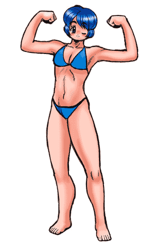 普通の体型にすると優美が童顔、長身なのが良くわかります。腕も長いですね(^_^;A ちなみに変身ものをしないのは、このようにGIFアニメにしないとわかりにくいこと、それによって一つ作るのに大変な手間がかかる事、その手間のわりに画像が重くなるので大きなサイズで見せられない事、筋肉はトレーニングによってつくものであってほしいという考えがある、などがあります。 よって変身ものの続編は難しいです、やったとしてもこれと入れ替えるでしょう(壁紙と同じ扱い) |