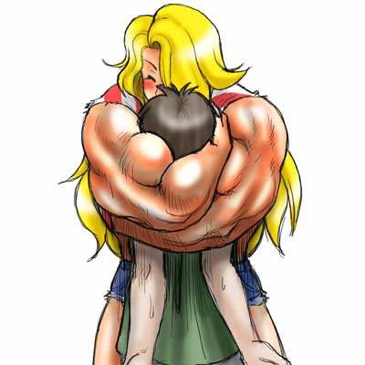 この三枚で見るとジェニファーは潰しちゃった事に気付いてないように見える。そっちの方が恐いかも・・・ 体勢としても抱き締めるという事からも、これ以上内側に腕が入る事は考えにくいのでこのあたりが最終段階。 相手がやや小柄(160cmくらい)なので大きい人が相手だと、また変わってくる。 もし毎度こんな感じなら、ギューッとが敬遠されるのは当然と言える。 |