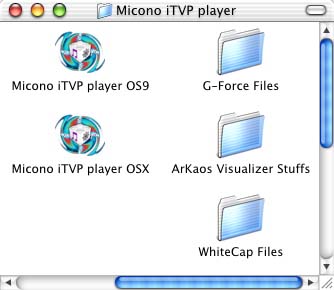 Micono iTVP playerは、iTunesのVisual pluginを様々な方法で再生するソフトウエアです。「同時マルチプレイ」、「9分割表示」、「スクリーンセーバー」として機能させることが可能です。「iPodum」に組み込む機能、および、「Micono iTVP plugin」の新バージョンの動作チェックの為に作成したソフトウエアです。