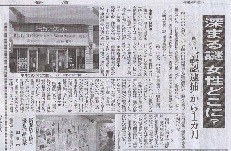 人に取り押さえられ、四日市南署員に引き渡された後、死亡した事件から、17日で一ヶ月。男性は無実と判明したが、男性を「泥棒」と叫んだ女性の行方は不明のまま。謎は深まるばかりだ。
