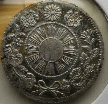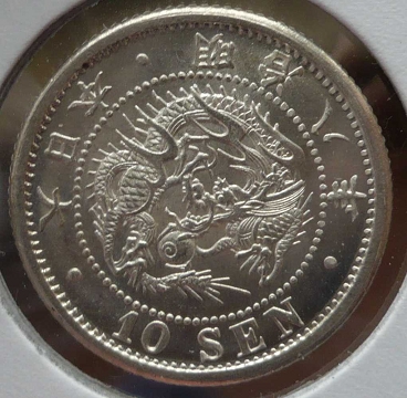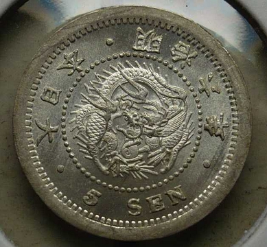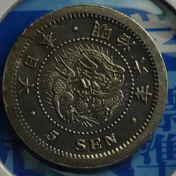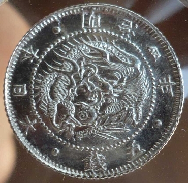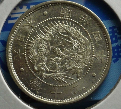状態」 トーン極美品+ この年号はとにかく製造時の 作り(圧印状態、元刻印の欠けや補刻)が悪いです。 本品も流通磨耗が原因でなく、製造時の刻印の問題で流通磨耗しているように見えると考えます。 (竜図の頭部欠落はこの年号特有で、刻印上の問題で欠落している。欠頭龍とよばれます。) とは言え、本品はこれでもかなり圧印のきれいな方だと思います。 旭日面の強トーン、竜図面の 一部ブルートーンがいい感じです。 ギザも不明瞭