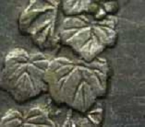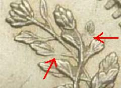 「手変わり」 珍品度◎(稀)のb'型の桐葉です。 この年号の桐葉はb'とe型がありますが、なんとも味気ない分類名です。 b'はリボンのある枝に穴が開いていて、e型は枝に穴が開いていません。 見分け方も簡単でわかりやすいので「穴あき枝リボン」とでも名前を変えれば、 人気が出る手変わりだと思うのですが ↓赤矢印部が枝の穴開き部を示す。