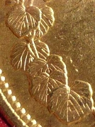 「状態」 財務省放出金貨美品A 本品も未使用品に見えます。 新金貨は旧金貨に比べ重厚感がなく面白みに欠けるなどという人もいますが、 桐葉菊葉と文字のバランスなどスマートな美しさが気にいっています。 ボリューム感があるところもGOOD。 また非常に微細な細工もされています。 ![]() ![]() 左側の年号面の中央旭日は5.9mmの間に29本が真っ直ぐ彫られています。 ピッチ0.2mmの溝加工もすごいし、厚印技術もすごい! また、右側の葉脈も浅く乱れが無くすばらしい彫金、圧印技術です。 |