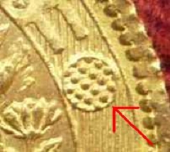 ![]() 参考;これは明治四年旧1円金貨の旭日部のアップです。 ピッチは新20円よりやや小さいものの(小さい所がすごいですが) 上記の新金貨ほど、溝の作りは精巧ではないですね。 |