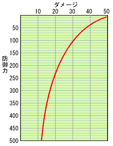 ![]() 特定の攻撃による防御力とダメージの相関 |