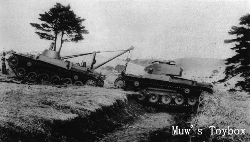 Mさんのアルバムのキャプションには「起重機にて壕から九七式中戦車を救出中の状況」とあった。