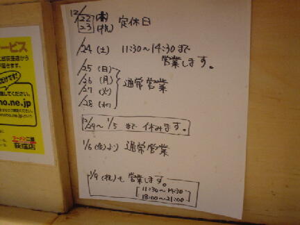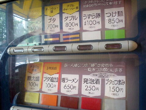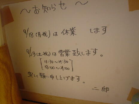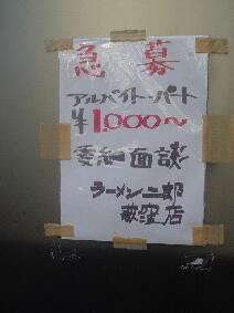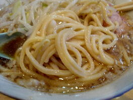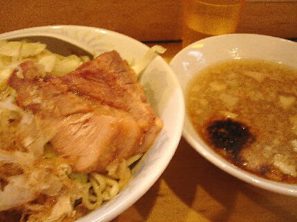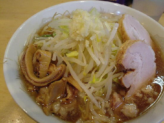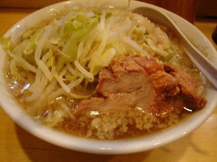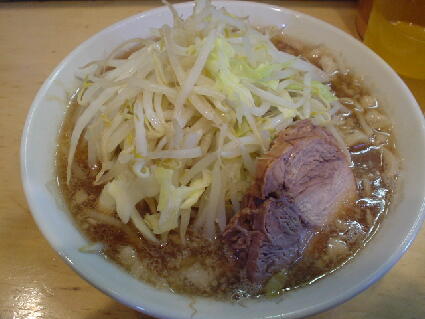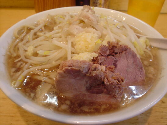 ラーメン二郎荻窪店 住 所:東京都杉並区荻窪4-33-1 MAP 最寄駅:JR中央線/営団地下鉄丸の内線荻窪駅 営業時間:11:30〜14:30 18:00〜22:00(土〜21:00) 日曜12:00〜20:00 定休:木・祝 ![]() ![]() カウンターにはコショウと唐辛子とティッシュ。レンゲ有り。 2009.3.24(TUE) 14:00頃到着。 店内ちょうど満席。 ![]() つけ麺 塩 にんにく¥900 つけ汁は旨みタレにマー油とコショウ、唐辛子のピリ辛スパイシー味。 縮れの少ないツルツルとした麺はそのままだと絡みが弱そうだが、つけ汁には液体、固体ともアブラがラーメンの倍くらい入っておりうまくコーティ ングされる。 麺の上に乗せられた花かつおがいいアクセントになる。 麺だけをみると以前より細く感じた。 二郎でいうと中太の部類。 ここの食券は豚入りの場合 片面にだけ印が入っているらしく、裏にして置いていた男性に助手さんが 「これだとただのラーメンになっちゃうんで表を上においてください。今ぶた追加で持ってきますから。」と言っていた。 片面に印を入れているのは店側の都合なのだから客に対して言うならお願いするのが基本だと思うが、注意するような口調で言っていたのに違和 感を感じた。 ![]() 2009.1.19(TUE) 14:20頃到着。 昼の部閉店間際にぎりぎり間に合った。 店内ほぼ満席。 ![]() ラーメン にんにく少しアブラ¥650 荻窪の麺は通常だとムチムチとしたうどんとラーメンの中間のような食感。 硬めだとみっちりとした密度を感じる。 硬めの方が二郎らしさを感じるが僕は基本的に店主の出したい仕上がりを味わいたいので、硬め指定はあまりしない。 スープはあっさりとしながら出汁がしっかりしていて、醤油ダレもいつもより甘めで濃い目に感じた。 最近は二郎以外では豚骨やWスープなどのこってりとした味やガッツリとした煮干などよりも、昔ながらのあっさりとした醤油ラーメンを食べ歩いて いる僕にとって二郎も食べたいけどあっさりをも食べたいという時にここの味は丁度よい。 最近の新店の傾向をみると、今後 荻窪や新代田のような独自路線はあまり出てこないだろう。 本流の二郎の仕上がりとはちょっと違うけど、今後も独自路線を貫いて欲しい。、こういった幅の広さも二郎の魅力だろう。 2008.11.21(FRI) 13:40頃到着。 一人待ち。 ![]() 値上がりしていた。 厨房には店主と助手。 ここの厨房はいつもピカピカに掃除がいきとどいている。 ![]() ラーメン にんにく¥650 いつもよりスープの表面に細かい背アブラが多く浮かんでいる。 土台のスープはいつもの荻窪のあっさりスープ。 割と醤油のたった仕上がりだった。 麺はプルプルとした表面ともっちりとしたコシ。 ![]() 豚はホワホワとした柔らかさ。 若干ツナっぽい。 いつも通りの荻窪らしい一杯だった。 2008.5.12(MON) 11:10到着。 5分程待つといつもどおり早めの開店。 開店時の客は4人。 すぐに入店が続き8割がた席が埋まる。 厨房には店主と助手。 ![]() ラーメン麺少なめ ニンニクアブラ ¥600 乳化していないすっきりとしたスープ。 すっきりとしながらも二郎らしいコクと香りがある。 これぞまさしく二郎と荻窪ラーメンの出会いといった仕上がり。 麺はツルツルとした独自の食感。 最早ラーメンの麺と言うより、強力なコシの讃岐うどんに近づいている気すらする。 ![]() 豚はホロホロとした柔らかい塊りが二個。 ![]() いつもどおりのブレの少ない仕上がりだった。 2007・6・4(MON) 11:15頃到着。 いつもどおり開店時間より早く開いている。 先客2人。 ![]() ラーメン 麺少なめニンニク¥600 スープは表面を大目の液体油が覆う。 すっきりとした仕上がりだが出汁と醤油ダレがしっかりきいている。 昔の仙川を思い出す。 麺はツルツルとした二郎っぽくない食感だが芯は二郎らしいどっちりとしたコシがある。 豚はホワホワとした柔らかさとプルプルの脂身。 ![]() 僕が食べ終わる頃入ってきた若者はなぜか二人分の食券を出す。 1席は当然本人が座っているがもう1席は空席なのに食券だけが置かれる事に。 店主が尋ねると、後から来るとのこと。 お昼時で店が混みはじめ、当然後から来た客は空席と思い座ろうとする。 その度店主が 「すいません、いらっしゃるんで。」 とあやまっていた。 食券を出した本人は知らん顔。 行列の割り込みと同等もしくはそれ以上に自分勝手な行為と感じた。 2007・3・13(TUE) 二日酔い明けの定番荻窪へ。 11:20頃到着。 先客5人。 荻窪は大抵定時より早めに開いている。 食べ終わった11:40頃には満席になっていた。 ![]() ラーメン麺少なめにんにく¥600 ガツ¥150 現助手さんは野菜の盛りが若干少なめ。 隣の人は「野菜ましまし」と言っていたが、大した盛りではなかった。 いつもながらのすっきりとしつつも、しっかりとした味のスープ。 この日はなんとなく上野毛を思い出す味わいだった。 荻窪のスープには魚粉があいそうだ。 いろいろチャレンジする店主だけにいつかやってくれないだろうか。。。 ガツは網ではさんでガスバーナーで炙ったもの。 しっかりと醤油の味