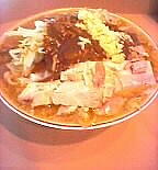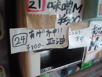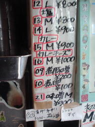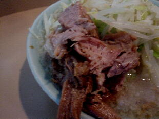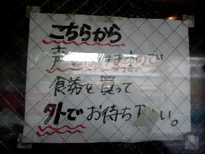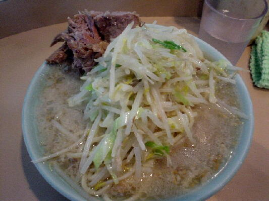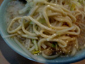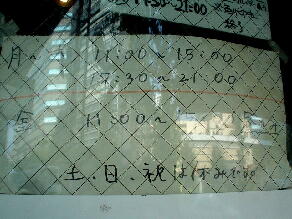 凛 住所:東京都品川区大崎 1-20-16 MAP 営業時間:11:00-15:00 17:30-21:00 金昼のみ 定休日 :土曜(営業する時もあり)・日曜・祝日 メニュー: 正油 M700 L800 塩 M800 L900 カレー900 カレーチーズ1000 煮卵100 *麺硬さ指定、トッピングコール等不可。麺少なめは受け付けてくれる。 ![]() ![]() カウンターにはコショウ、唐辛子。レンゲは無し。 2007・2・14(WED) 14:45到着。 先客3名。 壁際の入り口側の席にすわるといつもに増して音楽が鳴り響いている。 ふと上を見上げると・・・ まさにスピーカー中央の真下。 ![]() Dr.feelgoodの男気あふれるPub Rockが鳴り響く。 懐かしいな、昔大好きでよく聴いていた。 ただ、音楽に興味ない人がラーメン食うにはちょっとつらい席かな。。 15分ほど待ってラーメン完成。 ![]() 正油M にんにく麺少なめ¥700 四角い太麺は独特のグミグミとした食感がうまい。 パスタっぽい食感もある。 あえて二郎で言えば新代田が近いかな。 背脂がたっぷりと浮いたスープはガッツリと醤油が効いている、さらに前に出すぎることのない甘味がバランスよく効いている。 以前のような凶暴的なしょっぱさはないが相変わらずパンチの効いたうまさだ。 独特のドロドロ感は味わいは違えど○二と似たものを感じる。 ホロホロの豚は相変わらず醤油が効いていてしょっぱい、でもうまい。 細かく刻まれたにんにくは量多め。 音楽は続いてミッシェルガンエレファントへ。 いい繋ぎだ。 2006・10・31(TUE) 13:00頃到着。 先客5人。 ![]() 券売機に向かうと一番下にみなれないメニューが。 ![]() あげネギ正油 ニンニク不可と書かれている。 渋谷 喜楽好きの僕としてはあげネギに惹かれ即座に食券購入。 ![]() 店員によるとアブラ少な目のラーメンとのこと。 もしかして以前やっていた細麺 あっさりスープの純東京ラーメンかな、と思ったが出来上がり提供されたのはいつもの凛のラーメンをベースとした ものだった。 ![]() あげネギ正油 ¥800 あぶら少な目といってもあくまで凛としては〜と言う意味。 二郎としてもけっして少なくはない。 全体にたっぷりと揚げた玉ねぎが入っている。 玉ねぎの甘味がスープに混じり僕としては好みの味。 馬場ほどではないが若干崩れかかった豚。 ガッツリと醤油が染みており、かなりしょっぱい。 ![]() 麺はいつも以上にパスタっぽい仕上がりだった。 ミートソースをかけても違和感ないかも。 ただ凛の麺は茹で上がりによって大分印象が変わる気がする。 ![]() 濃い口の醤油スープ、煮込まれた豚、全体を覆う玉ねぎ、これにじゃがいもが入ったら「肉じゃが風ラーメン」になりそうだ。 相変わらずの完成度の高い一杯だった。 ![]() 2005・10・13(THU) 11:15頃到着。 先客2人。 開店直後なのでまだ空いている。 ![]() 現在は商品名に「賄」も「マカ」もつかなくなっている。 細麺は大井町で再開してこちらは太麺だけになったのでこれでいいのだろう。 味噌はもうやらないのかな? 大音量のミッシェルガンエレファントを聞きながら出来上がるのを待つ。 ![]() カレーM 麺少なめ ¥900 初めにカレーと混じる前の土台のスープを端から飲んでみる。 やはり以前のような暴力性はなくかなりマイルドになっている。 以前のしょっぱさも二郎好きにはいいが、一般的にはこちらのほうがうまさが伝わりやすくて良いだろう。 モヤシ中心の野菜の上にかかっているカレーは飴色に炒められた玉ねぎがタップリ入ったマイルドな味わい。 スープとの相性はばっちり。 以前は平たい太麺だったが今回は新代田のような四角い中太麺になっていた。 ツルツルした食感で丁度、新代田と荻窪の中間のような感じ。 もしくは30年位やってる昔ながらの極太スパゲティー屋の麺にも近いものを感じる。 ![]() 以前は塊りといった感じだったが現在は普通の何枚といった形状。 ホワホワと柔らかくうまかった。 ![]() 帰り際には早めのランチタイムに入った人たちによって店外2人待ちになっていた。 2005・6・18(SAT) 今月は土曜日もやっているということなので行ってみる。 昨年の夏に引越しをしてちょっとだけ遠くなってしまったので久しぶりの訪問だ。 途中、目黒の前を通ると相変わらずの行列。 13:45頃到着。 先客2人。 店主の姿はなく男性二人で営業していた。 食券を渡すと「にんにく入れますか」と聞かれたので。 「はい。あと麺少なめで」とお願いする。 基本的ににんにくを入れるか入れないかだけでその他のコールはできないが、麺少なめには対応してくれる。 ちなみに券売機にマカカレーは無かった。 店内をみまわすとレンガ側にあった司馬遼太郎の文章が無くなっていた。 BGMは相変わらず大音量。 歪んだギターのミックスチャーが流れている。 更なる爆音のなかで暮らしている僕には全く平気だが、慣れてない人にはつらいだろうな。 ![]() マカ正油 M にんにく麺少なめ ¥700 おや、見た目がいつもよりライトな感じだな。。 一口スープをすすってみる。 うまい!! 表面の液体アブラと細かい背脂の量は相変わらずだがいつものよ