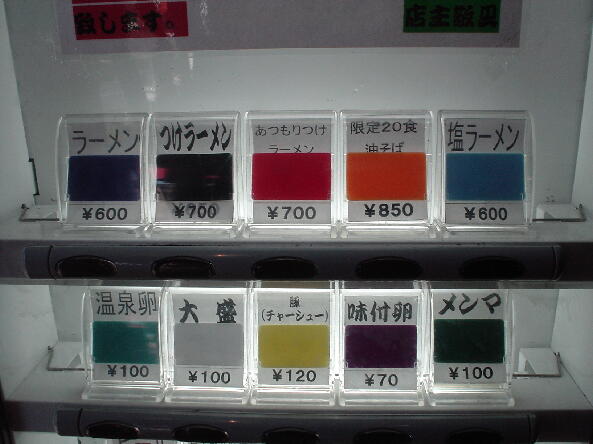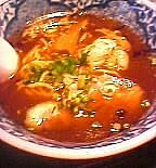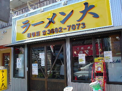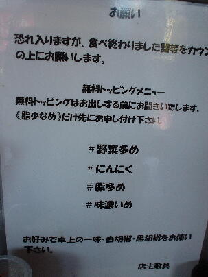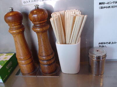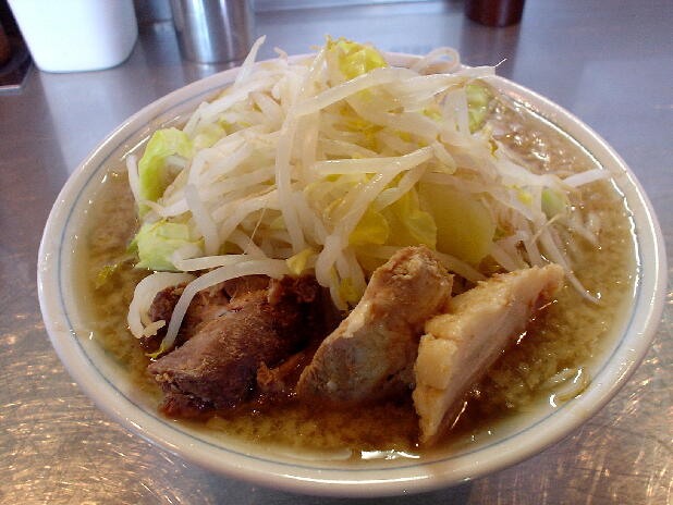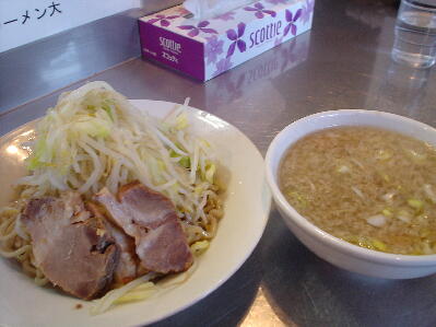 ラーメン大堀切店 旧二郎堀切 住所: 葛飾区堀切5-4-1 MAP 最寄駅: 堀切菖蒲園 営業時間: 11:30-0:40 無休 ![]() ![]() カウンターには白・黒コショウ、ミル器は料理人が厨房で使う大きなもの。唐辛子。レンゲあり。 2008.1.31(THU) 13:30頃到着。 店舗は以前の場所から丁度道をはさんだ向かいに移転していた。 ![]() 先客6人。 店内はL字のカウンターのみ。 ステンレスのカウンターでオシャレな雰囲気。 厨房には男性が一人。 入って左側に券売機。 ![]() ![]() ![]() ![]() ![]() ラーメン ¥600 土台のスープは堀切らしいすっきりとした仕上がりだが、表面を覆う細かい背脂と濃い目の醤油ダレでかなりコッテリとした仕上がり。 四角く縮れた太麺は硬めの茹で上がりでゴワゴワとした食感がうまい。 ![]() 豚は塊りが3個。 ホロホロとして箸で簡単に崩せるしあがり。 ![]() 思ったより量があり僕には十分な量。 今まで食べた堀切系の中ではスープがいちばんカラメに感じた。 ![]() つけラーメン ¥700 連れはつけラーメンを注文。 つけダレの表面には刻んだ長ネギが浮かんでいる。 ![]() つけダレは酸味を抑えたタイプ。 ラーメン同様、表面にびっちりと背脂が浮かんでいる。 旧店舗は現在空き店舗のようだ。 ![]() また並びには大のオーナーが経営するイタリアンレストラン、ラーメンとアジア料理の店「天照」がある。 ![]() 2004・11・1 店名が二郎から大へ変更される。 2003・12・5 ![]() 14:30頃到着。先客一人。 外にある券売機に気づかずそのまま入ってしまった。 もとそば屋という店内はほぼそのまま使っているのだろう年季を感じる。 厨房にはコック姿の若者が一人。さすがイタリアンの料理人が経営する店だ。が、二郎っぽくない。。。 壁には雑誌の記事がべたべたと貼ってある。 ![]() ラーメンにんにく野菜¥550 味玉¥70 野菜はもやし70%キャベツ30%。シャキシャキとクタクタのちょうど間くらい。 麺はどっちりとした特徴のある四角い太麺で食べ応えがある。量は少ない。 四角い豚は小さいのが2枚。 すっきりしたスープは醤油、みりん、化調、油の全体的バランスが良い。 味玉は中までしっかり味が染みていて半熟の黄身はねっとりとした食感。 ![]() 隣には同じ経営者のイタリアンレストラン。 ![]() さらに同じ通りにもう一軒系列のラーメン屋「天照」がある。 外にあるメニューを見ると小らーめんがある。 なかなか来る機会のない地域なのでこっちも食べてみることにする。 といっても連食は「らー博」を除けば初めてである。これも二郎を食べ続けて胃が広がった結果か? ![]() 天照らー麺 ¥480 豚骨、トリ、魚介を使ったスープ。豚骨のとろみ、トリの旨味、魚介の香りが調和している。 甘味のある濃い目の醤油たれもあっている。。。。が、たれ半分位でもダシをじっくり味わえておいしいかも。。。 麺は二郎よりは細いがどっちりとした食感は同じ。 チャーシューは香ばしく焼き上げてある。 スープに浮かんだ揚げたまねぎも全体の香ばしさをアップさせている。 ![]() テ-ブルに置かれた特製カラ味噌「天照ジャン」 後半スープにいれるとゆずの香りと程よい辛味で再度味わえた。 エスニック調の店内。音楽はレゲエだった。夜はアジアンダイニングになるようだ。 TOP |