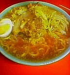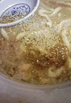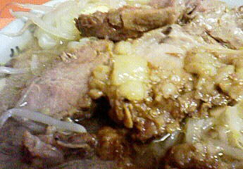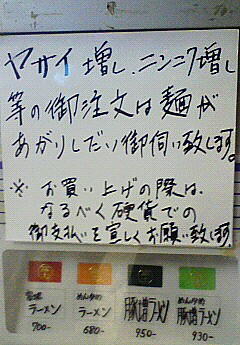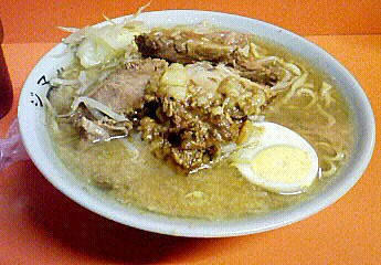 ラーメン富士○神谷本店 住所:北区神谷3-29-11 MAP 最寄駅:J地下鉄南北線 志茂/JR赤羽 営業時間:18:00過ぎー24:00 休日:月曜日 ![]() ![]() カウンターには醤油タレ、コショウ、ラー油、ごま、唐辛子。レンゲあり。 2008.5.1(THU) ![]() 18:00に到着。 18人待ち。 この時点ではまだ店は開いていない。 店舗の二階は製麺所になっている。 ![]() 18:10に助手さんが出てきて人数を確認。 そして18:13に看板に灯りがともり開店。 店頭に置かれたベンチに座りひたすら待つ。 順番が来ると助手さんが店内に誘導してくれる。 入って右に券売機。 ![]() ![]() 店内の待ち席には石油ストーブが。 当然この季節は稼動していなかった。 ![]() ![]() セルフサービスの水、おしぼり、レンゲは店内の奥にある。 ![]() 厨房には店主ともう一人の助手さん。 コップは珍しい金属製。 ![]() 並び始めてから一時間弱でついにラーメン完成。 ![]() めん少なめラーメン ¥680 まずはスープを一口。 うめぇぇぇぇぇ!! 一時間並んだ事を後悔させないうまさだ。 僕にとって二郎のスープの魅力は濃厚なコクと程よい甘味、そしてそれに対する醤油ダレのキレのバランスだ。 濃厚さを目指すインスパイア店は多いがこのキレとのバランスが本家にしかできない真骨頂だと思う。 そしてそれらの要素を独自のベクトルで強めたのが冨士○のスープだと思う。 まさに冨士○でしか味わえない究極の味だ。 表面の大量のアブラと交じり合いドロドロとした濃厚スープ。 平たく程よく縮れた太麺も最高の味わい。 ブリブリとした弾力とホゴホゴとした二郎らしい独特のコシが味わえる。 硬めの茹で上がりで良かった。 ![]() 豚はホロホロとした柔らかさで醤油ダレがしっかりと染み込んでいる。 ![]() 野菜は冨士○の特徴クタ野菜。 ノーコールだと量はさほど多くない。 途中でラー油を投入してみた。 表面のアブラと交じり合いなかなか相性がいい。 続いてすりゴマを投入してみる。 意外とあっているが、ゴマの香りが冨士○の特徴のしょうがの香りを相殺した為、若干普通の醤油ラーメンっぽい風味に変化した。 ![]() 食べ進むとドンブリに富士○のロゴマークが現れた。 ![]() あっというまにスープまで完食。 大満足の一杯だった。 2007夏 ○二(マルジ)から富士○(フジマル)に店名変更。 2003・12・11 ![]() 21:30頃到着。待ち客7人。 しばらく待って店内に案内されると懐かしい石油ストーブが置かれていた。 ![]() 電子レンジが普及する前、学校ではこれのまわりに弁当置いて温めてたな〜 店内は入って左手に6・7人のカウンターがあり、右手は4人卓が3つある座敷。 店の奥に冷水器とおしぼりが置かれている。 砂壁の店内はいい感じで年季が入っている。店に漂う石油ストーブの匂いと相成り田舎の親戚の家に来たような感じだ。 ![]() ラーメン にんにく少し¥650 麺は平たい太麺。硬めの茹で上がりでうまい。量は普通 野菜はクタクタに炊かれたもの。この麺とからむとこのクタクタ具合があっている。ノーコールでの量はさほど多くなかった。 豚は醤油の味がしかっり染みていた。普通の厚さのが一枚。 スープは甘めでおいしいが、豚のダシのコクが薄く化調が強めだった。 ゆで卵が1/2個乗っていた。 前の人の盛り付けをみていたら、なんとなくにんにくが多めに見えた気がしたので「少なめ」でお願いしたのだがこれは僕にとって「吉」だった。どん ぶりに山と積まれたにんにくは普通の刻みにんにくかと思って眺めていたのだが、スープを味わった瞬間口に広がったのは僕の苦手な業務用おろ しにんにくの香りと一緒だった。せっかくのおいしいスープの香りが消されてしまう気がして苦手である。その為に「国産にんにく¥100」というのが あるのかな。 特徴のある硬めの麺と甘めのスープ、二郎の中でも中毒性が高そうである。 TOP |