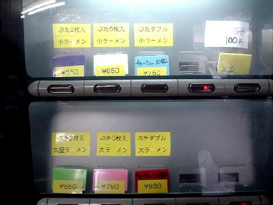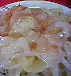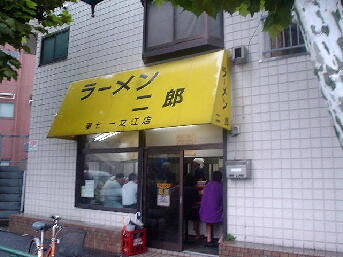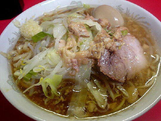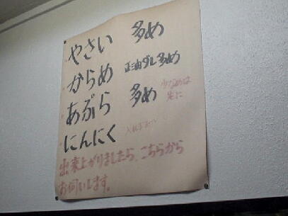ラーメン二郎環七一之江店 住所:江戸川区春江町4-6 MAP 最寄駅:都営新宿線一之江駅 営業時間:11:00-14:00 17:30-21:00 定休日:水 ![]() ![]() カウンターには白コショウ、唐辛子。レンゲ有り。 2006・9・1(FRI) 13:15頃到着。 待ち客3人。 ![]() 並んでるうちに大きさを聞かれる。 回転は早い。 ![]() ![]() ![]() ぶた2枚入り小ラーメン麺少な目 にんにくアブラ ¥550 味付玉子¥100 乳化していないスープはライトな仕上がりだが、タレの味濃い目で表面には厚めの液体アブラの層があるのでパンチがある。 甘めの味に亀戸の流れを感じる。 馬場のスープと似ている。 野菜はノーコールだとやや少なめ。 平たい太麺は丁度良い茹で上がり。 少なめで僕には丁度良い量。 豚はホロホロとした柔らかさ。 味付玉子は黄身がねっとりとした仕上がり。 味付けも丁度良くうまい。 ライトだが軽すぎずバランスのとれた一杯だった。 ![]() 2004・4・20 13:45頃到着。先客10人。 ![]() GW休みの告知あり。 厨房には今夜臨休の張り紙もあり。 ![]() ぶた2枚入り小ラーメン ニンニク野菜アブラ ¥550 スープは一口目からしっかりとしたうまみを感じる。表面には液体アブラの層が厚めに張っている。軽く乳化していて豚と醤油の香ばしい香りがす る。丼の底にはコンビーフ状の豚がたまっていて麺にドロドロとからみうまい。開店当初よりしっかりとしたコクのスープへと成長していた。 麺は平たい太麺。本店に近い少し柔らかめの茹で上がり。 野菜はもやし80%キャベツ20%。 豚は前回より味が染みていた。柔らかさも調度良い。あとはもう少し脂身があると好み。 アブラコールしたので野菜の上に固形の背脂がのる。 ![]() 全体として十分な量だった。パンパンの腹を抱えて上る帰りの横断歩道がキツイ。 2004・1・18 ![]() 13:30頃到着。昼の部終了30分前で15人待ち。一瞬麺切れ終了の恐怖が浮かんだが無事列に並ぶ事ができた。(閉店の14:00の段階で並 んでる人までで終了していた) 店内はカウンターのみ14席位。 厨房には店主と若い女性と中学生位の男の子。3人は家族なのかな? ![]() ぶた2枚入り小ラーメン にんにく野菜あぶら ¥550 麺は平たい太麺。茹で上がり普通。「麺硬め」で頼んでる人が結構いたが僕はこのままで調度良いと思う。 野菜は調度良い茹で上がり。キャベツ4割位で多めだった。 豚は歯ごたえがある。ぶ厚く大きく十分な食べ応え。ぶたダブルだとこれが10枚、普通の人だったらそれだけでお腹が満たされるだろう。味は薄 めだが豚の味がちゃんと残っていてうまい。 スープは軽く乳化している。見た目より以外にあさっりしていた。あっさり度が更に強ければ仙川っぽい味になるかも。すっきりしているがうまみとコ クが調度良い感じであった。 トッピングコールの時に「麺硬め」を頼んでる人や、あまりの量に撃沈している人など開店間もない為初めての人も多そうだった。僕も初めて二郎に 行った時はいきなりはじまったトッピングコールにびっくりしてあわてて隣の人のコールを真似した。 TOP |