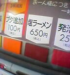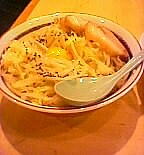ラーメン二郎荻窪2003-2004 2004・12・6(MON) 11:45頃到着。店内に待ち客2人。 厨房には店主と若いいつもの助手さん。 ここの店主の麺茹では、ときには予備で一個だけあるデボざるも駆使し、非常に手際よく行われる。う〜〜ん素晴らしい、ぜひ新代田にも。。。。い や、あそこは待つのも味の一つか、、、 席に座るとすぐにラーメン完成。 ![]() 小 ニンニク野菜アブラ 野菜はもやし8割。頂上にくずれた背脂が乗る。 豚は厚みのあるのが2枚。ホワホワとやわらかい。スープに浸かって柔らかくなっていた。そのままだとツナのような食感。 麺は四角く太い。ツルツルとしたうどんのような食感とどっちりとしたコシの荻窪独特の麺。茹で上がり硬めでうまかった。 スープはいつものすっきりとした仕上がりでキリッと醤油の味がたっている。後味に酸味を感じる。醤油と豚出汁の香ばしい香りがする。この日の 仕上がりはさらにカラメにすれば最近のしょっぱくなくなってきた目黒に感じが似たかも。 たべ終わり頃、となりの席が空き、待っていた人が席に着く。水を置く手のひらが以上にデカイ!! なんだこの巨人!! 失礼のないよう静かに視線を移す。 お相撲さんでした。 ここでお相撲さんを見るのは2回目。二郎という食べ物にこれほど似合う人たちも居ない。 やっぱ、「大ダブル全増し」とかかな〜と見ていたのだが、普通に「小」だった。 おやつかな。 2004・11・3(WED) 今日は文化の日で祝日だが、前日の夕方に「11/3つまみセット販売 二郎荻窪店です 11/3営業します なお、おつまみセット限定販売致し ます」とメールが来たので行ってみる。 16:45頃到着。先客2人。 遅い時間なのでもしかしたら売り切れかな?と思ったが無事おつまみセットを購入できた。 厨房には助手さん2人で店主の姿は無し。助手さんのうち一人は先日新代田にも居た人だった。 硬めで注文したのでさほど待たずにラーメン完成。 ![]() 小 麺少なめ硬めニンニク野菜アブラ ¥600 麺はツルツルとした食感の太麺。あまり硬めにはなっていなかったかな。 豚はツナのような食感。 スープは乳化していないとてもすっきりとした仕上がり。かなり醤油の味がたっている。前回助手さん二人のときは僕好みのまったりとしたコクがあ ったので期待したのだが、今日は荻窪らしいいつもの仕上がりだった。行く度いろいろな仕上がりが楽しめるのも荻窪の魅力。 ![]() おつまみセット ¥500 以前と一緒の内容。上が豆板醤味、下は粒マスタード味。開けた瞬間にニンニクの香りが漂う。というか、開ける前から漂っているがw そのままでもおいしいが、レンジで温めるとさらにおいしい。 2004・10・17(SUN) 13:30頃到着。日曜ということもあってか店内に6人待ち。 今回は復活した「塩」の食券を購入。以前にもやっていたのは知っていたが食べるのは今回が初めて。 ![]() ここは並んでいる時に店主から大か小かを知る為に「食券の色見せて下さい」と言われることがある。今回はそのパターンで席に着いてからさほど 待たずに食すことができた。 ![]() 塩ラーメン ニンニク¥650 白いスープ。一口すするとしっかりとした旨味を感じる。豚の臭み等は一切ない。塩ダレも控えめでしょっぱくはない。かと、いって薄くもなく絶妙。 豚も塩味で醤油ダレには漬けられてない。ちょうどよい弾力でうまい。 シャキシャキの野菜は塩のスープにとてもあっている。スープとからめて食べるととてもうまい。 麺は荻窪らしいプルプル、ムニムニと粘度を感じる食感。 おいしかったが後半ちょっと飽きた。隣の人の丼の茶色いスープが恋しい・・・ もうワンポイントなにかあると飽きなくていいかも。野菜の上に多めの白ゴマとか。 2004・9・9(THU) 夜の部オープンの18:00を少し過ぎて入店。先客0。僕が一人目かな。 厨房には助手さんが2人。店主の姿は無かった。 ![]() 小 ニンニク¥600 この日のスープはコクがありとてもうまかった!この方向で維持してもらえると嬉しい。 アブラコールはしてないが大きめ背脂の塊りが結構浮いていた。 豚は中ぶりのが2枚。ツナのような食感。脂身はプルプル。 麺はモチモチとしたいつもの荻窪の麺。硬めで頼んだら端っこがゴワゴワしててうまかった。 「超硬め」とかできたらぽっぽっ屋みたいな仕上がりで結構おいしいかも。 2004・8・30(MON) 13:50頃到着。先客3人。 券売機の「豚のつまみおみやげセット¥500」は日曜ではないので売り切れの表示。7・8月限定とのことだったが継続はしないのかな?結構評判 良かったみたいだし。 ![]() 小 ニンニク麺硬め¥600 生とうがらし¥20 麺はツルツルとした食感。硬めでもゴワゴワとした粉っぽさは無くどっちりとしたコシが増す感じ。 スープはすっきりとした荻窪らしい仕上がり。 生とうがらしは以前はただの輪切りだったが、今回はごま油に浸けたものに変化していた。これが荻窪のスープに合っていてとても良い。スープと 一緒に飲み込めばほどよい辛さ、麺と一緒に噛みこめば激辛に。 豚はほどよい弾力の