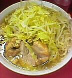野菜はキャベツともやしが半々。アブラコールしたので頂上に細かい背脂の塊りが乗る。