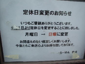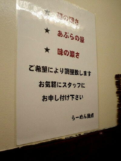 らーめん我点 閉店 住所:杉並区永福3-35-8 MAP 最寄り駅:京王井の頭線西永福 営業時間:11:30-15:00 18:00-24:00 定休日:日 2006.7.8開店 2007.6.24閉店 ![]() ![]() ![]() カウンターには醤油、酢、ラー油、コショウ、魚粉。レンゲ有り。 2007.6.27(WED) ![]() 営業時間等の張り紙が全て剥がされていた。 約一年の営業だった。 2007.4.30(MON) 目が覚めると完璧に二日酔い。 二郎に行きたいと思ったがこれでバイクに乗ったら完全に飲酒運転だ。 というわけで歩いて行ける我点へ。 13:00頃到着。 新しく調味料として魚粉が置かれていた。 そういえば移転後のまっち棒にもあったな。 ![]() ![]() らーめん にんにく麺硬め ¥650 スープは乳化度高めのクリーミーなスープ。 乳化度は九州の豚骨ラーメンばりである。 麺はそれほど硬めには感じなかった。 ツルツルとした麺はらーめんや二郎の麺よりうどんに近く感じた。 途中で魚粉を投入。 明らかな変化は楽しめるが相性はまっち棒の力麺のような醤油スープの方が良いようだ。 ![]() ![]() 餃子 ¥300 餃子は見事な羽付き。 パリパリと香ばしい。 中身の餡はスタンダードなもの。 2007.4.1(SUN) ![]() 2007.1.5(FRI) 13:30頃到着。 先客3人。 ![]() 赤辛らーめん にんにく野菜麺硬め ¥750 スープは万人向けの程よい辛さ。 味噌のマイルドさとのバランスが良い。 ノーマルのラーメンより味噌やこの辛味噌の方がここのスープにはあっているかも。 ゴマダレと挽肉を入れたらそのまま良い感じの坦坦麺になりそうだ。 にんにくとの相性も良い。 麺は弾力のあるタイプで硬めにしても二郎のようなゴワゴワとした小麦感はなかった。 @状のチャーシューが一枚。 ホロホロの柔らかさ。 全体としていわゆるまっち棒系の一杯。 そろそろこの店だけのオリジナル性が必要な時期かもしれない。 2006・8・13(SUN) 12:30頃到着。 先客4人。 一組は年配の地元民。 細かい要望に店員が丁寧に対応している。 ちなみに麺の硬さは「柔らかめ」だった。 ![]() ![]() 味噌らーめん にんにく野菜 ¥700 味噌はそれほど強くなく土台の塩味のスープがメインで結構しょっぱかった。 塩ラーメン屋の「あいうえお」が出した二郎風らーめんと方向性は似ている。 野菜を大盛りで頼んだので綺麗に丸く野菜が盛られてきた。 量があるので卓上の醤油でもかけようかな、と思って食べると野菜に味がついている。 見た目では分からなかったが白醤油タレか何かが、かかっていたようだ。 チャーシューはトロトロでうまかった。 ツルツルモチモチとした縮れのほとんどない無い麺。 食べ進めると後半少し飽きてくる。 ![]() 壊れて修理中なのかな? 看板が無くなっていた。 2006・7.8(SAT) ![]() 13:00頃到着。 待ち客3人。 メニューは先日オープンした喜三とほぼ一緒。 ここも間違いなくまっち棒系だろう。 ホールの男性がテキパキと客を誘導している。 ![]() ここは以前からラーメン屋が続いている店舗で2Fもあるのだが、今回は客席としては使われていないようだ。 4席のテーブルが二つ。カウンターは7席。 前身のラーメン屋は1年もたなかったかな? その前は大島ラーメン。 その前は居酒屋兼定食屋(多分) その前が町の中華屋。(ここまでくると20年前くらいの話だが) 近所の学生や一人暮らしのサラリーマンなどが日常的に使う店が続いている店舗。 厨房には男性が3人。 非常に慣れた連係プレーで、この店の前にもどこかでしっかりと経験をつんでいる感じがした。 丼はかなり小さめ。 まずはタレが注がれる。 あれ? 醤油タレというよりは塩タレのように見える。 もしくは白醤油タレ? つづいて白い粉(もちろん多め) そしてスープと液体あぶら。 ![]() らーめん ¥650 スープは白くあきらかに豚骨醤油の部類ではない。 塩たんめんと言った感じ。 喜三がかなり二郎よりなのに対しこちらはどっちかというと岩男っぽい。 麺はツルツルとした食感。梵天に近いかな。 野菜には玉ねぎが入っていた。 @状のチャーシューは一枚。 ホロホロと柔らかかった。 にんにくを入れてもらうのを忘れたので途中でお願いすると小鉢で出してくれた。 ![]() すごい量。。。。 1/4も使えなかった。 帰り際もほぼ満席でなかなかの客入りだった。 一般向けの仕上がりだったし、割りと地元に根付いた店になるのではないだろうか。 TOP |