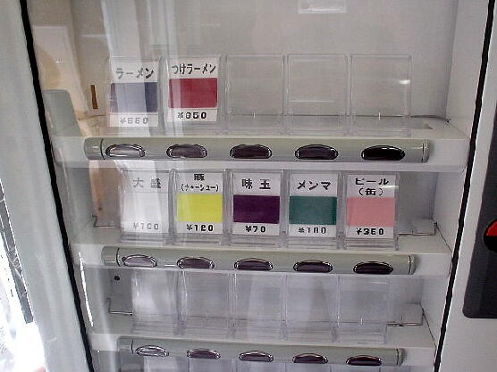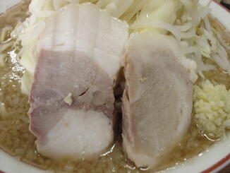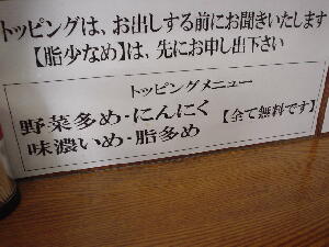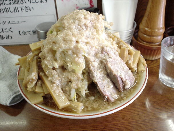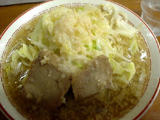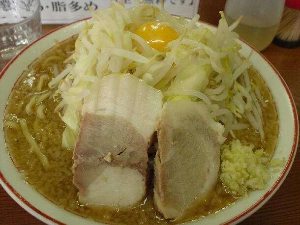 ラーメン大 西荻窪 住所:杉並区西荻南3-7-7 MAP 最寄り駅:JR中央線西荻窪 営業時間:11:30〜25:30 日祝11:30〜0:00 定休日:無休 ![]() ![]() カウンターには白・黒コショウ、酢。唐辛子。レンゲあり。 2008.7.15(TUE) 12:15到着。 先客はおばさんが二人。 このへんは昼間サラリーマンや男子学生の町ではないので昼は意外と空いているのかもしれない。 営業時間は中休み無しの通し営業になっていた。 券売機の表記が手書きに変わっていた。 と、思ったらラーメン以外のメニューが100円値上がりしていた。 ![]() 厨房には若い男性が一人。 ![]() ラーメン 野菜ニンニクアブラ ¥600 メンマ¥100 ![]() 以前より明らかに野菜コールに対しての盛りが良くなっている。 更にメンマも豚以外の場所をほぼ埋め尽くすようにぐるっと1周どんぶりをふちどっている。 ![]() 野菜がシャキシャキシャキ。 メンマがシャキシャキシャキ。 シャキシャキループの合間に麺をすする。 麺はオープン当初は太めに感じたが今は標準的な堀切系の中太麺。 硬めの茹でがりでゴワゴワとした食感がうまい。 僕の胃袋にはギリギリ完食のボリュームだった。 2008.3.28(FRI) 11:50頃到着。 先客4人。 価格が値上がりしていた。 またメニューにあたらしく生卵とマヨネーズが入っていた。 ![]() ラーメンが出来上がるとトッピングと同時に生卵を「全卵」か「黄身だけ」かを聞かれたので「全卵」でおねがいした。 これは新メニューのマヨナーズ同様基本的には油ラーメン用のアイテムとして導入されたからだろう。 そいえばカウンターにお酢も置かれるようになったし。 ![]() ラーメン にんにく ¥600 生卵¥50 野菜はノーコールでトングで一掴みとちょっと。 ![]() 生卵はお椀ではなく直接野菜の頂上に載せられている。 そこで静かに、にんにくが入っているのとは逆に移動させスープと絡める。 そこに白コショウを一振り。 生卵のマイルドサイドとにんにくのパンチサイドを交互に食べ比べてみる。 両方うまいのだが、生卵の方が甘めの堀切のスープとばっちりの相性で他にはないうまさを感じた。 ![]() 豚は以前より大きく食べ応えがあった。 2007・5・26(SAT) 晴天で暖かい中、西荻の大へ。 これだけ暖かいと「つけ」や「油そば」も美味そうだが僕のお目当てはいつもどおりラーメン。 つけや油そばも美味いと思うが僕の場合その何倍もラーメンの方が好きなのだ。 が、 到着して店に入るとモヮ〜〜〜とした熱気が店内にうずまいている。 お客さんも汗だくで食べている。 これはキツイ。。。。 思わず油ラーメンのボタンに指がのびる。 ![]() 天井には新しい業務用空調機が取り付けられているのだが単純に稼動させていないだけのようだ。 12:30頃の到着で先客4人。 ![]() 油ラーメン 野菜にんにく¥650 野菜は高さは無いが実際にはドンブリの底まで入っているので結構な量。 豚も同様に底まで入っているのでかなりの量。 豚は細切りにされていてそのままだと冷たいが、熱々の麺と混ぜると温まり若干柔らかさがでた。 その他、玉子の黄身、刻み長ネギ、メンマが乗る。 通常のラーメンより100円高いがそれ以上の具材の盛りを感じた。 タレは通常のラーメンと同様の甘めの味で、丁度麺に絡まる程度の量で、食べ終わるとドンブリにタレはほとんど残っていなかった。 タレと油の絡んだこってりとした麺に刻み長ネギが丁度良いアクセントになった。 麺はいつもどおりの硬めのゴワゴワ麺で食べ応えばっちり。 後半少し酢を入れてみたが香りと酸味が強くあまり好みではなかった。 マイルドな黒酢などの方がここの油そばには合いそうだ。 もしくは酢を入れるのを前提にするなら油とカラメコールをすればバランスがよさそうだ。 2006・12・22(FRI) 13:30頃到着。 先客3人。 新しく営業時間の張り紙があり、日祝は11:30〜0:00の通し営業になったようだ。 ![]() ラーメン ニンニク野菜アブラ ¥550 堀切系って二郎ほどブレや変化がないんだよね。 若干前回よりスープの醤油タレが薄く感じた位であとは特に変化なし。 ゴワゴワブリブリとした麺の食感を楽しみ完食。 2006・11・29(WED) 12:30頃到着。 先客5人。 厨房には若い男性が一人。 初めてのお客さんが入ってきてそのまま座ろうとする度 「先に食券をお願いします〜」 と、声をかけている。 ![]() ラーメン ニンニク野菜アブラ ¥550 野菜の頂上に細かいニンニクがのせられ、その上から平ザルで濾された背脂がかけられる。 野菜はトングで多めに一つまみ。 今後、蒲田や暖々のように盛りが凶暴化していくことを期待したい。 小ぶりの豚はまわりがうっすらとしたピンク色で、味わいもまさにチャーシューと言った感じ。 堀切式にのっとり豚には黒コショウをかけて頂く。 (ちなみに白コショウはスープ用) ゴワゴワとした麺をガシガシと噛みこんでいく感触がたまらない。 スープはかなり甘辛。 気軽に来れる場所で、年中無休。 西荻に大ができたのは僕にとってかなりありがたい。 2006・11・14(TUE) 13:30到着。 店内はカウンターのみ8席。 満