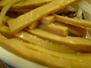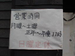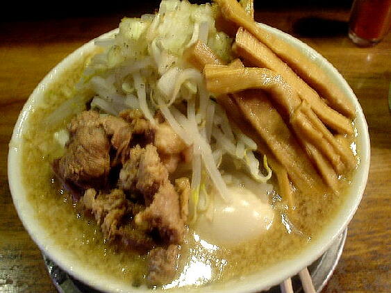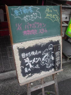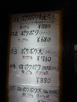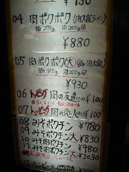 マンモスラーメン ポクポクポクチン 2007.4閉店 住所:神奈川県横浜市港北区日吉本町 1-2-6 MAP 最寄り駅:東急東横線日吉駅 営業時間:12:00-23:00 定休日:日 ![]() ![]() カウンターにはコショウ、醤油漬けにんにく、唐辛子。レンゲあり。 2006・11・22(WED) ![]() 15:00頃到着。 店の入り口外側に券売機。 券売機はメニュー番号を打ち込むタイプ。 ![]() メニューは変わったネーミングで面白い。 ![]() 入り口の黒板には煮干新味と書かれている。 ![]() 店内に入ると確かに煮干の香りがする。 店内はカウンターのみ10席。 近くの大学生で賑わっている。 壁中にマンモスのイラスト入りのPOP等が貼られている。 ワイルドなタッチだがかなりの画力だ。 プロの人が描いてるのかな。 ![]() ポクポク友達恋人(ラーメン+味付玉子+メンマ) ¥880 前ロットの学生達は 「にんにく入れますか?」 「野菜ましで!」 等のやりとりがあったが僕の場合は何も聞かれずに出てきた。 メニューによって違いがあるのかな。それともたまたまか。 スープはマイルドな豚骨醤油。 特に煮干の香りは感じなかった。 麺は滑らかな食感で縮れのない平たい太麺。 コシが強く食べ応えがある。 最近の凛に少し似てるかな。 野菜にはキクラゲが入っている。 シャキシャキ感が増していい。 ぽっぽっ屋のように大きいままよりこの方がいいかもしれない。 野菜の上には刻んだ玉ねぎが乗っている。 ![]() 大き目のメンマはコリコリとした食感で上質なもの。 量も十分でメンマ好きの僕としてはかなりのヒット。 ![]() 程よい味の付いた玉子は黄身が丁度良い半熟。 ![]() 豚は若干崩れかかったもの。 ![]() 後半はカウンターの醤油漬けにんにくを入れていただく。 香りはそれほど強くない。 ![]() 食べ終わるとドンブリの下からマンモスの絵が出てくる。 ![]() 二郎にインスパイアされながらもオリジナル性があり楽しめた。 細やかで丁重な接客も良かった。 TOP |