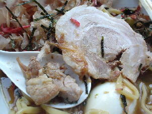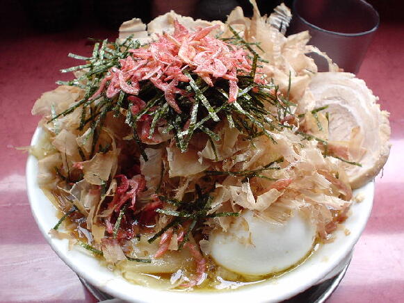 ラーメン丸裕 閉店 住所:港区南青山6−7−11 MAP 営業時間:11:00-22:00 定休日:日 ![]() ![]() カウンターにはコショウ、醤油タレ、酢、ラー油、七味唐辛子。 2008春閉店 2007.1.24(WED) ![]() 12:50頃到着。 先客10人位。 店内は入って左側がカウンター席。 道路に面して10席。 厨房に面して7席位。 入って右側部分にもテーブル席がある。 外装、内装、配置ともに野沢に移ったまっち棒の新本店とよく似ている。 メニューもいわゆるまっち棒系のメニュー 他店との違いは値段が安い。 ![]() ![]() ラーメン全部のせ ¥900 具材は野菜、桜えび、かつおぶし、のり、わんたん、チャーシュー、半熟玉子。 スープはかなり甘め。 ここは前身が同経営のそば屋だったらしいが、なんとなく天つゆっぽいというか肉じゃがの汁というか、そんな感じの甘さを感じる。 麺は平たい長方形の太麺。 硬めの茹で上がりで今まで食べたまっち棒系の中では一番好みの仕上がりだった。 ![]() 豚は@状のが3枚。 脂身がトロトロの柔らかさだった。 さらに四角いチャーシュー3.4個。 こちらもホロホロとした柔らかさだった。 ![]() 玉子は中身がトロトロの半熟。 ![]() なんでも本店でも和歌山ラーメンがなくなり二郎風ラーメンメインになっているらしい。 すごい展開だな・・・ ![]() TOP |