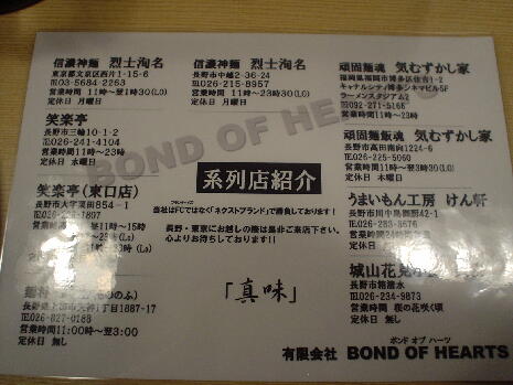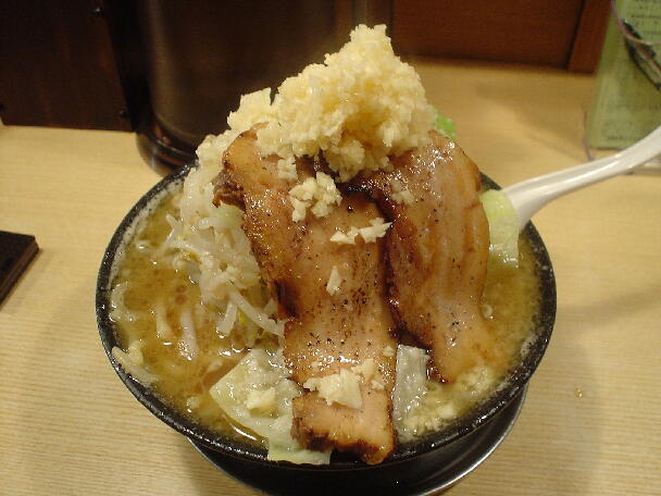 気むずかし家 閉店 住所:福岡県福岡市博多区住吉1丁目2キャナルシティー5Fラーメンスタジアム2内 MAP 営業時間:11:00-23:00(LO22:30) 定休日:無休 2008.3.22オープン ![]() ![]() カウンターにはコショウ。 2008.4.15(TUE) 2008.3.22に福岡キャナルシティーにオープンした「気むずかし家」に二郎インスパイアメニューがあるということで訪問。 その名も「きむ二郎」 ラーメンスタジアムの公式HPでは今月の1杯として紹介されていた。 ![]() 施設内に入ってすぐ右が気むずかし家。 外に券売機が設置されている。 ![]() 目当ての「きむ二郎」は800円と中でも高め。 ![]() 11:00の開店と同時に一番乗り。 店内は牛丼屋のようなコの字カウンターが15席。 4人がけのテーブルが5。 ホールに女性が一人。 厨房は奥でよく見えないが男性が3人ほど。 店名に反して明るく好印象な接客。 食券を渡すと 「ニンニクが入りますがよろしいでしょうか?」 と聞かれたので、お願いすると、今度は厨房に向かって 「二郎入りまーす!」 直な呼び方に思わずドキっとしてしまった。 ![]() このお店は長野に本店があり他にも系列店が色々あるようだ。 ![]() 濃厚な鶏ガラスープがメインのようだが「きむ二郎」はメニューにおいて一番大きくレイアウトされている。 ![]() ラーメンが完成すると銀色のお皿にドンブリがのせられて出てきた。 カウンター越しに受け取るとき若干バランスが難しく緊張した。 ![]() きむ二郎 にんにく¥800 写真では結構大盛りに見えるが実際にはドンブリが小さめで、底に向かって通常よりすぼまった形状なので、全体量はさほど多くない。 といっても、福岡の豚骨ラーメンに比べればかなりの大盛りだが。 ニンニクの量はかなり多め。 途中で崩れてカウンターにばら撒いてしまった。 ![]() 麺はまっち棒系っぽいツルツルとした中太麺。 二郎っぽいゴワゴワ感は無い多加水麺。 福岡の極細麺は低加水がメインだから本家二郎のようなゴワゴワ麺は受けると思うんだけどな。 もちろん太さと量は真逆過ぎるが。。。 ![]() チャーシューは二郎のような塊りではなく、○枚といった形状。 トロトロの柔らかさだった。 ![]() スープはうまくまとまった豚骨醤油。 野菜はもやしの上に大きめに四角く切ったキャベツが乗っていた。 全体として花月でやっていたラーメン太郎を思い出した。 ラーメン新太郎よりはラーメン太郎。 さほど二郎度は高くなかったが、福岡でこういった一杯が食べられるのは貴重かも。 TOP |