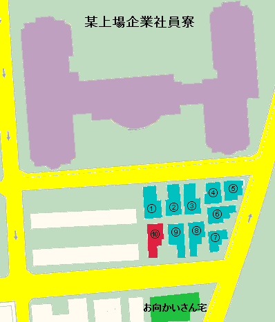 我が家(赤のIの家)の向かい側(南側)の家(緑色)がお向かいの○山さん宅です。丁度真北方向(地図では真上)にある東京タワーからの電波に対する障害条件はほぼ同じであることが推測されます。