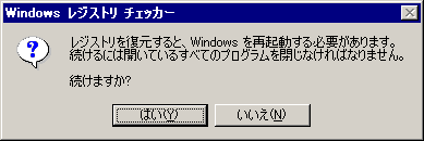 これをsystem.dat、system.da0、user.dat、user.da0の4個のファイルに対して行い、Windowsを起動します。めでたく新しいレジストリで起動するはずです。