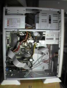 ATXの場合ソフトスイッチなので電源が入らない場合、怪しむべき個所がATより多い。まず電源を確認すると後ろにスライドスイッチがあった。これが115になっていたので、ずらしてみると230になった。これだ!! 出力が足りなかったのだ!! ただそれにしてもこの電源は230Wだったのかとちょっとムっとする。良く確かめなったが確か250Wを買ったはずだったのに。まあでもいい、それどころではないとにかく再挑戦。スイッチオン!! ................ ガーン!!やっぱりだめだ。ガーン!!!ガッガーン!!! Oh! My God!!