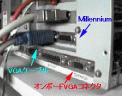 くれぐれもオンボードビデオのVGAコネクタに接続しないように。ちゃんと増設ボード(Millennium)のコネクタに繋げよう。
