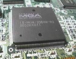 チップは下図のようにMillennium IIに搭載されているチップMGA-2164Wや最近の他のベンダーのチップがBGAになっているのに比べ、QFPと時代を感じさせるが、その2D性能は全くひけをとらない。