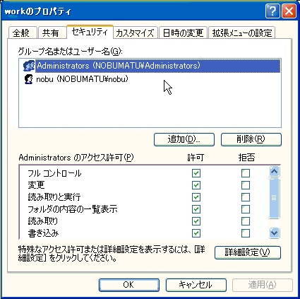 [Administratorsグループのアクセス権が付与されたフォルダ]
