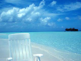 美しいビーチに白いチェアのワンポイントが結構絵になります。